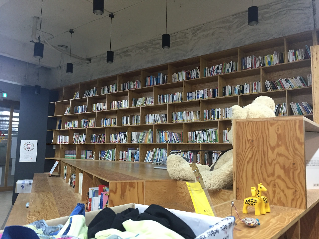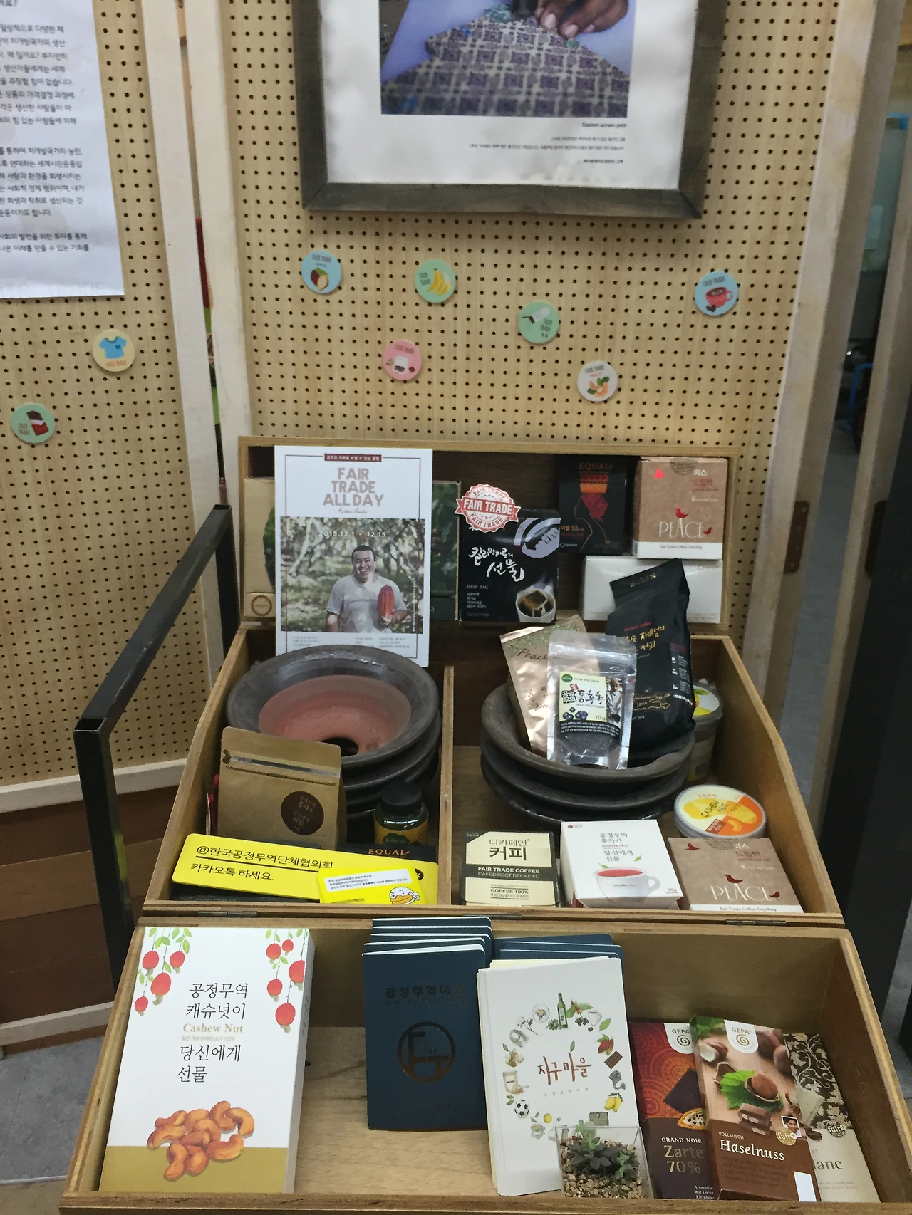 비영리기구 (제가 어릴 때엔 '시민단체'라는 단어로 배웠어요)가 모인 곳 같은 느낌적인 느낌이 납니다. 어지러우면서도 자유롭고, 아기자기합니다. 곳곳에 붙은 포스터나 책상에 오른 물건은 공정무역이나 공유와 연대 개념을 알리거나, 이 3가지 콘셉트에 바탕해 만든 것들입니다.