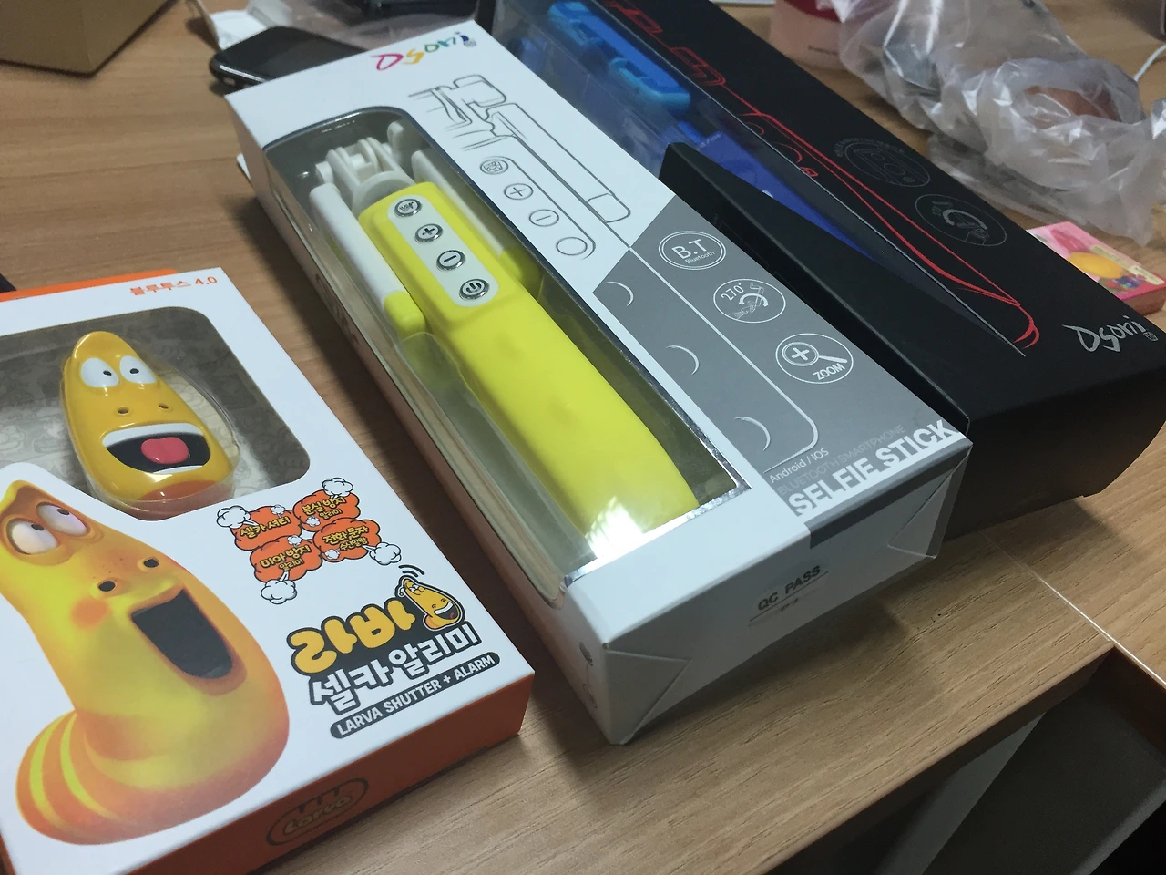 아, 네, 더기어 사무실은 평범합니다. 책상은 사무용 책상이고요. 고등학생이면 수학의 정석을, 스타트업이면 두닷이나 소포시스를! 인데 더기어는 남다르게도 그런 책상이 없었습니다. 갖가지 IT 기기를 리뷰하다 보니 셀카 알리미까지 +_+!!!! 아래 사진으로 보시다시피요