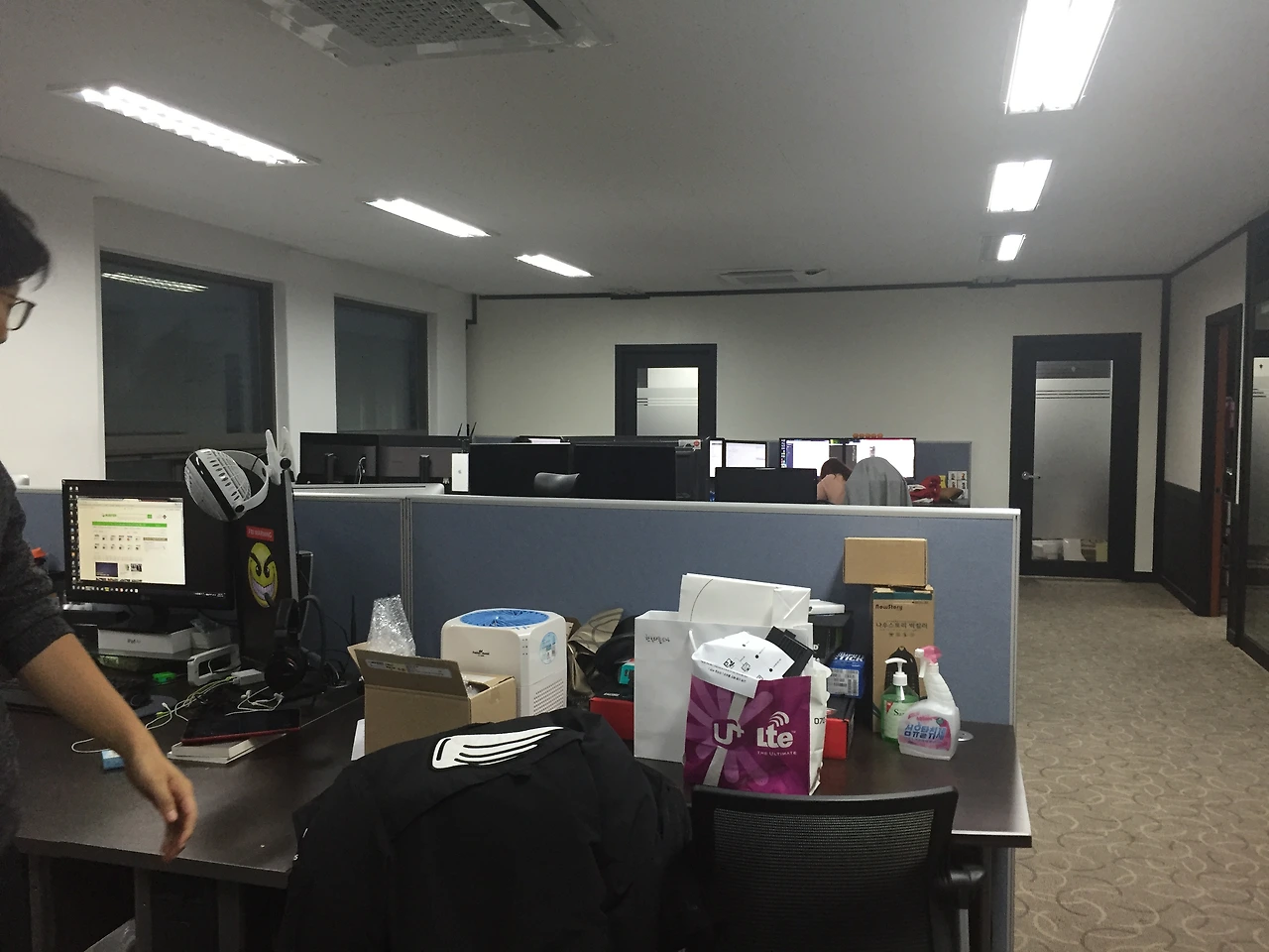 세 번째로 갔을 때엔 스튜디오가 말끔했습니다. 김정철 편집장이 쓰던 70만원 상당의 책상을 회사에 기증(한 거라 생각하면 되나요)해서 푸른 장갑 노승균 님이 쓰고 있었습니다.