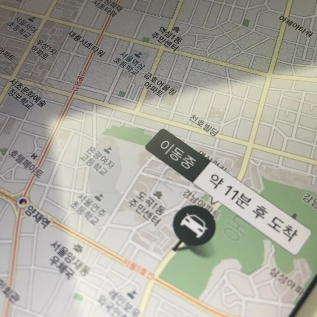 7시 40분쯤 카카오택시 앱을 열고 카카오택시블랙을 불렀습니다. 기사님이 바로 콜을 잡으시네요. 출발지는 강남역 사거리인데 기사님은 양재역 근처에 계심. 시간이 시간이어서 11분 후 도착 예상.