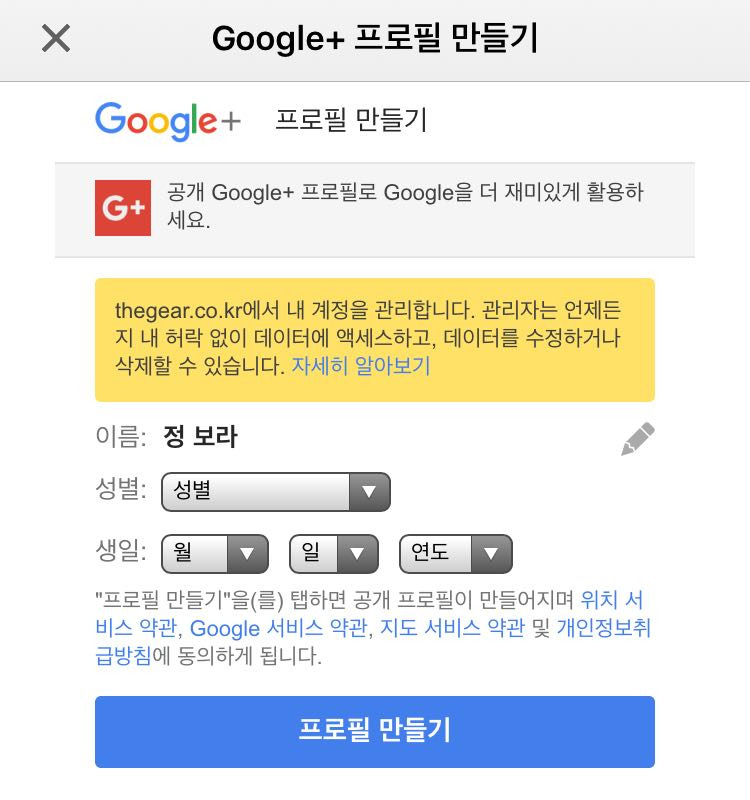 6. 구글이 내게 성별과 생년월일을 입력하라고 했다.