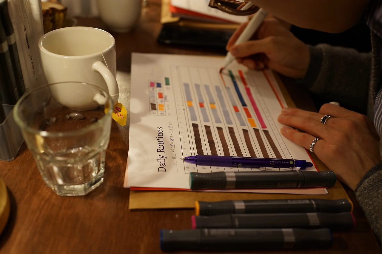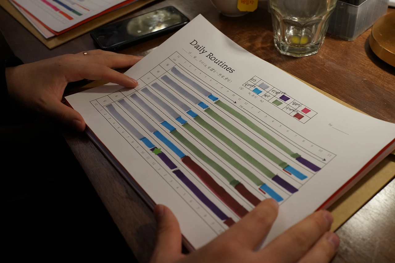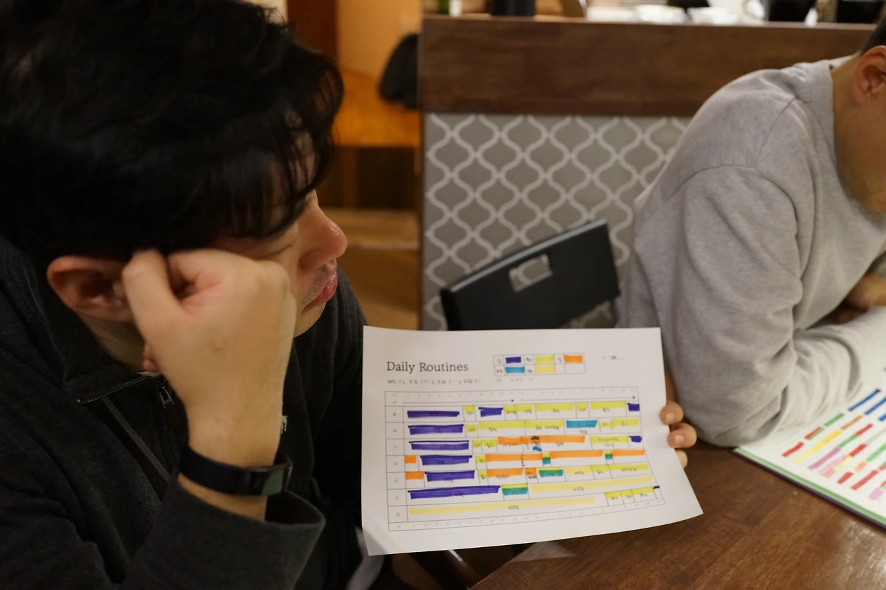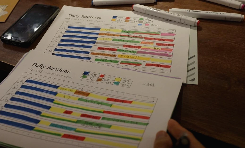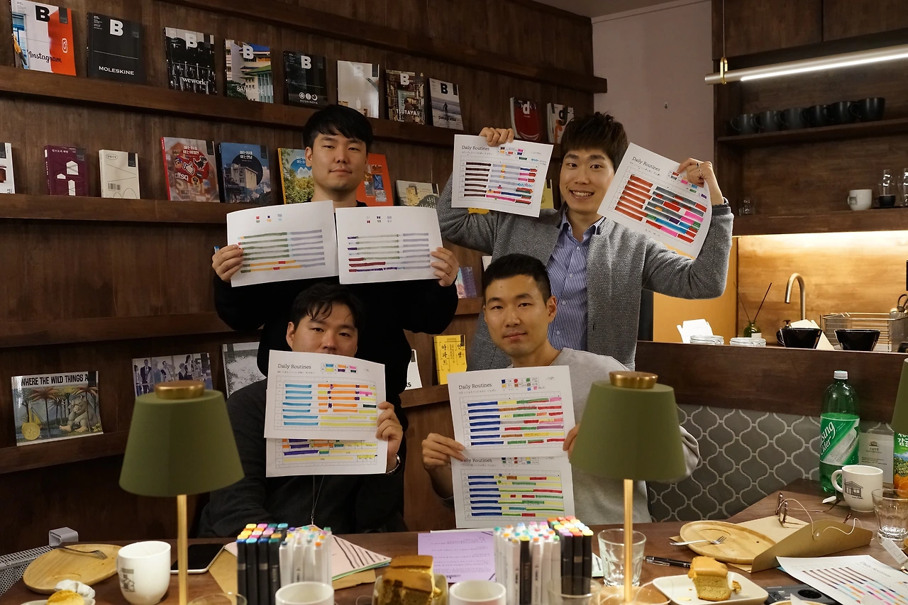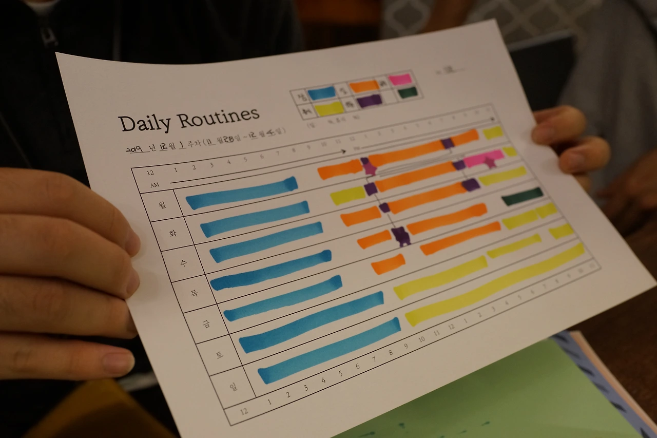 나: 다음 주 루틴을 그리며, 이야기하며 왠지 싱글벙글한 얼굴이 되신 것 같은데 저만의 착각인가요?