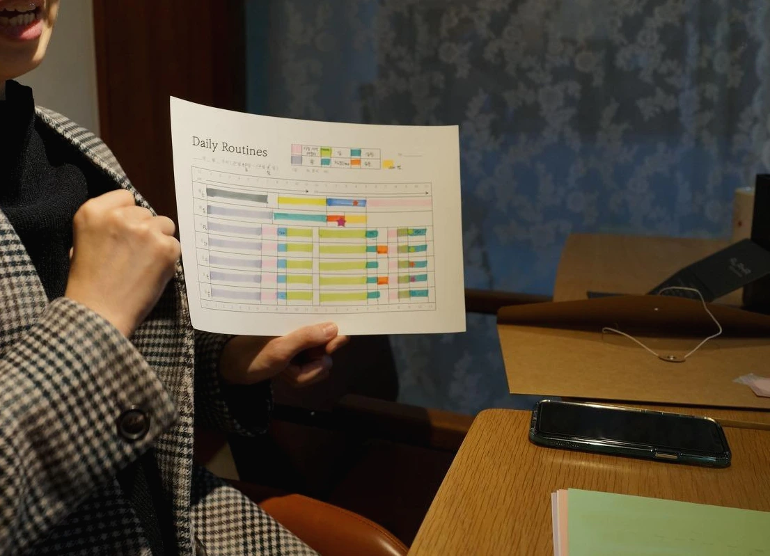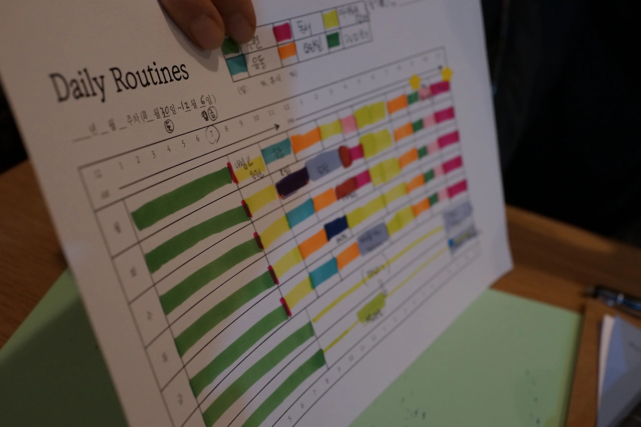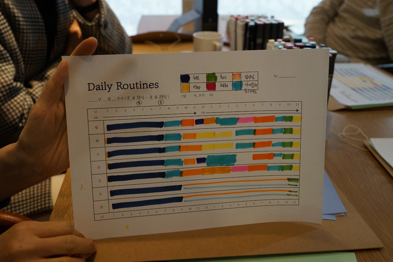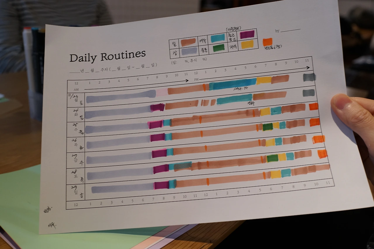 나: 다음 주 루틴을 그려보시니 어떠세요? 왠지 이 루틴을 보시면서 기분이 좋아 보이세요. 어떤 루틴 일지 정말 궁금해요.