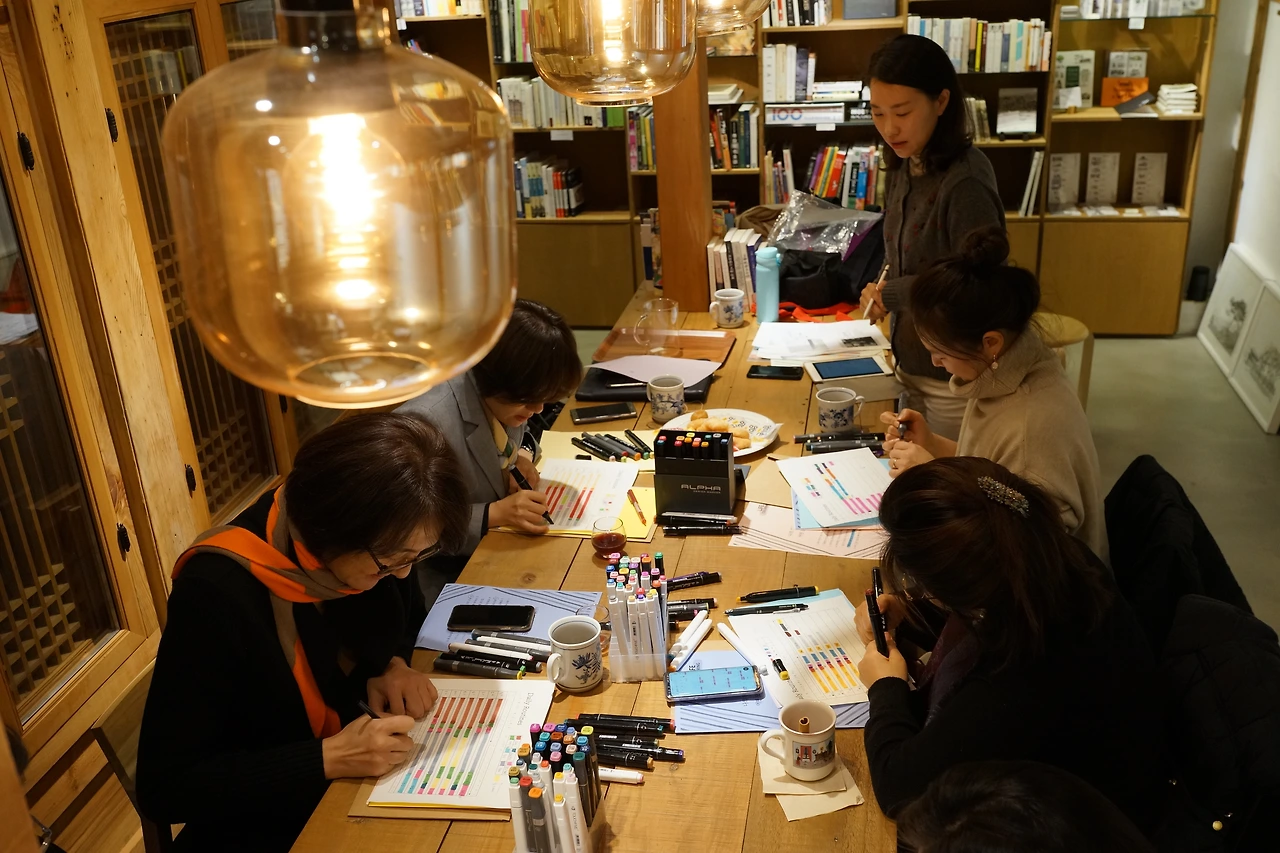 서대문 근처를 어슬렁 거리던 어느 날. 이 예쁜 한옥책방을 남편이 우연히 발견하고서는 저를 데려갔던 것이 11월 중순쯤. 이 공간에서 라이프컬러링 모임을 하면 좋겠다고 생각해 책방지기 사장님과 함께 모임을 기획했습니다.