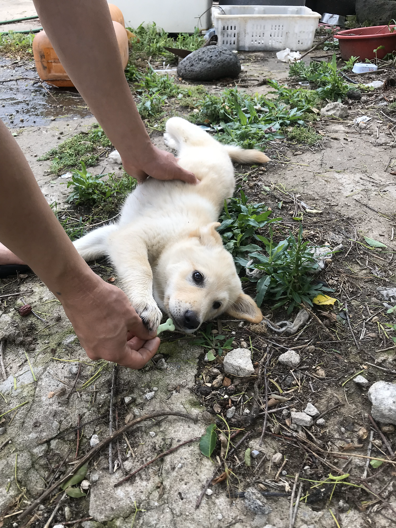 지난 일에 대한 후회는 아무 소용이 없는 일이니 그만 하더라도, 바구니에 담겨있던 일곱 마리 아기 강아지들은 자꾸 생각난다. 짧은 영상이나마 찍어두어 다행이다. 그중 한 마리는 우리가 땅에 묻어 주었고, 나머지는 모르는 곳에 뿔뿔이 흩어졌는데, 그 어떤 강아지들 못지않게 사랑스러웠던 꼬물이 시절 모습들을 생각하면 아쉬움은 자꾸 커지기만 하는 것이다. 그래도 보리나 무무 아이비 모두 덩치는 다 컸지만 예쁜 아이들이라서 잘 씻기고, 중성화도 해 주면 더 좋을 곳에 갈 수 있을지 모른다. 당장 씻길 일이랑, 차에 싣고 제주시까지 나갈 일 어느 하나도 만만하게 여겨지는 일은 없지만 또 이런 후회를 하느니 부딪혀 보면 되는 일일 것이다.