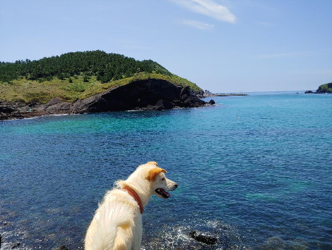 해안선을 따라 적당한 장소를 찾아 걷다가 사람들이 없고 물놀이하기에 적당한 곳을 찾아 내려갔다. 나는 대자연의 시기가 덜 끝나서 물에 들어가지는 않고, 지난번 산책할 때 찾은 용천수에 발만 담갔다. 바닷물보다 시원해서 기분이 좋다. 짝꿍은 작년에 사 둔 스노클링 마스크를 쓰고 바다에 둥둥 떠다녔다. 개들은 파도가 무서웠는지 바닷물 앞에서 뒷걸음질 치기를 몇 번 하더니, 내 귀 옆에서 시끄럽게 헥헥거리며 구경을 하다가 옆에서 자기들끼리 바위를 오가며 놀았다. 너무나 평화로운 모습이었다. ‘너무’는 부정적일 때 쓰는 말이라고 해서 되도록 쓰지 않으려고 하는데, 그 모습은 우리의 현실과 동떨어져 평화롭고 아름다운 모습 같아서 ‘너무’를 쓴다.