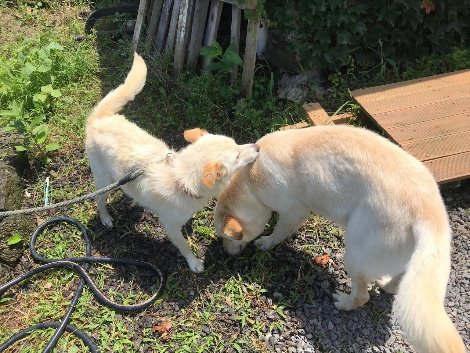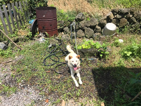 아이비는 너무 순해서 매번 우리를 놀라게 하는 아이인데, 목욕도 정말 얌전하게 잘했다. 아무리 래브라도 레트리버(이거나 믹스)라고 해도, 이 정도면 어릴 때 집에서 가족들과 산 적이 있었던 것 같다는 생각이 점점 합리적인 추정으로 느껴진다. 보리도 그랬지만, 아이비는 못 씻은 세월이 좀 더 길어서 그런지, 씻겨 놓고 나니 원래도 예쁜 얼굴이 뽀얗게 빛나고, 털도 반짝거리고, 만지면 뻣뻣했던 털이 부드럽고 뽀송뽀송했다. 어디 내놓아도 부럽지 않을 모습이었다. 한참을 씻기고, 말리고, 고양이 냄새도 맡고, 마당 구석구석을 돌아다녔는데, 마당 뒤꼍으로 가더니 어어 하는 사이 담을 넘어 뒷집으로 가버렸다. 예전에 보리랑 아이비가 우리 마당에 왔다가, 그 담을 넘어 직행해 뒷집 진돗개랑 말라뮤트랑 인사를 하고 있었는데, 이번엔 그 집에 담이 생겨서 못 넘어가려나 했는데도 훌쩍 넘어 또 진돗개 냄새를 맡고 있었다. 아이비는 중성화도 안 했으니 불안해서 불렀더니 오긴 했는데, 자기가 넘어갔던 담을 다시 못 넘어온다. 결국 내가 넘어가서 아이비랑 같이 동네 한 바퀴를 하고 돌아왔다. 신기한 건 아이비가 줄을 안 했는데도 나랑 같이 집으로 바로 돌아왔다는 것이다. 긴 산책과 물놀이가 산책 욕구를 충분히 채워주긴 한 모양이다. 해가 쨍쨍한데 마실까지 다녀왔으니 털도 다 마르고 해서 아이비는 집에 데려다주었다. 깨끗하게 씻긴 아이를 또 흙바닥에 두고 오려니 마음이 쓰렸다. 그래도 아이비에겐 일단 그곳이 집이니 안전하게 쉬길 바라는 수밖에. 지금 아이비 집은 원래 보리가 있던 곳인데, 아이비를 원래 있던 곳에 두면 길에 사는 수컷이 또 임신을 시킬지도 모르니 다른 곳에 두자고 아저씨를 설득해서 그곳에 옮겨 준 것이다. 험하긴 마찬가지이지만 그래도 임신의 위험이 거의 없고, 비가 오면 피할 곳도 있고, 진드기도 덜하니 아이비에겐 더 나을 것 같았다.