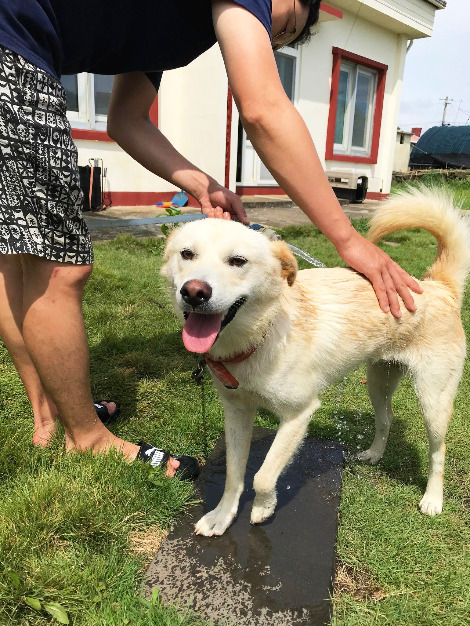 어제는 보리가 두 번이나 가출을 했다. 오전 내내 창문을 열고 있었고, 지인이 아기와 놀러오기로 해서 청소를 하려고 왔다 갔다 하는 데 보리가 전에 없이 너무 더워하고 있었다. 그래서 샤워를 좀 시키고 같이 골목까지 마중을 나갔다가 마당에 길게 연결된 줄에 묶어 뒀는데, 집에 에어컨을 키고 주문한 피자를 받고 하는 사이 헐거운 목줄에서 빠져나가 없어졌다. 줄이 담 쪽으로 나가 있길래 골목에 있으면 위험할 것 같아 데리러 나갔더니 동그랗게 목줄만 남아 있었던 것이다. 너무 놀라서 바로 골목 밖으로 찾아 나섰다. 이 동네로 오고 나서 잠깐씩 줄이 풀려도 골목 밖으로는 나가지 않고 바로 돌아 왔는데, 골목 밖 삼거리로 나섰는데도 한눈에 보리가 보이지 않았다. 마음이 조급했다. 용수리와 달리 여기는 주차된 차도 많지만 낮에도 다니는 차가 많아서 익숙하지 않은 길에서는 사고가 날지도 몰랐다. 보리를 부르니 다행히 한쪽에서 나타나긴 했는데 날 보고 오는 듯하더니 또 지나쳐 다른 집 대문으로 들어가 버렸다. 대문 안으로 들어가서 여유있게 한바퀴를 돌고 나서는 또 다른 집에 들어가 한바퀴 돌고.. 그나저나 이 동네도 집에 사람은 없는데 대문은 물론 창문들도 다 열려 있는 걸 보니 읍내라도 문 열고 다니는 건 제주도가 다 비슷한 모양이다. 한참 남의 집 뒤꼍으로 들어가 안 보이더니, 다른 곳을 찾고 있는 사이 아기와 나온 언니가 담 안에 있는 보리를 보고 여기 있다고 알려주었다. 높지 않은 담이라서 담 사이로 보리를 잡아 목줄을 채우고 담 위로 손을 들어 데리고 나왔다. 중간에 손을 놓치긴 했지만 실컷 놀았는지 순순히 따라왔는데, 그러고 나서 조금 있다 한 번 더 나갔다 왔다. 목줄이 느슨하니 자꾸 빠지는 것이었는데, 한 칸을 더 줄이니 너무 조이는 느낌이라 그대로 뒀더니 또 도망을 간 것이었다. 용수리에서는 그렇게 널널한 줄을 하고도 한번도 도망을 안간게 신기할 정도였다.