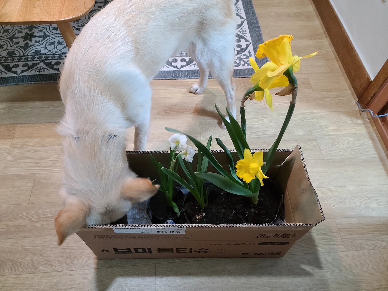 봄이 왔으니 벚꽃도 보러 가고, 고사리도 끊으러 갈 것이다. 마당에서 달래도 캐고 쑥도 캐야지. 집 공사도 잘하고, 공사 기간 동안도 잘 지낼 것이다. 오늘은 당근 마켓에서 책을 무료 나눔 했더니 수선화를 뿌리 채 세 개나 받았다. 어제 오일장에서 사 온 고추 모종, 로메인 모종, 방울토마토 모종 심을 때 한쪽에 꽃도 심어야지. 꽃이 피는 걸 남들보다 조금 늦게 깨달았어도 봄은 아직 남았다. 벚꽃도 조금 지나면 더 풍성해질 것이고, 고사리 장마가 올 때쯤이면 보리도 산책을 다닐 수 있겠지. 오늘은 봄비에 흐리고 축축한 날씨지만 산책을 못 가도 집에서 꾹 참고 잘 지내는 보리를 보면 조금 따뜻한 기분이 든다. 봄을 맞이하고 있다.