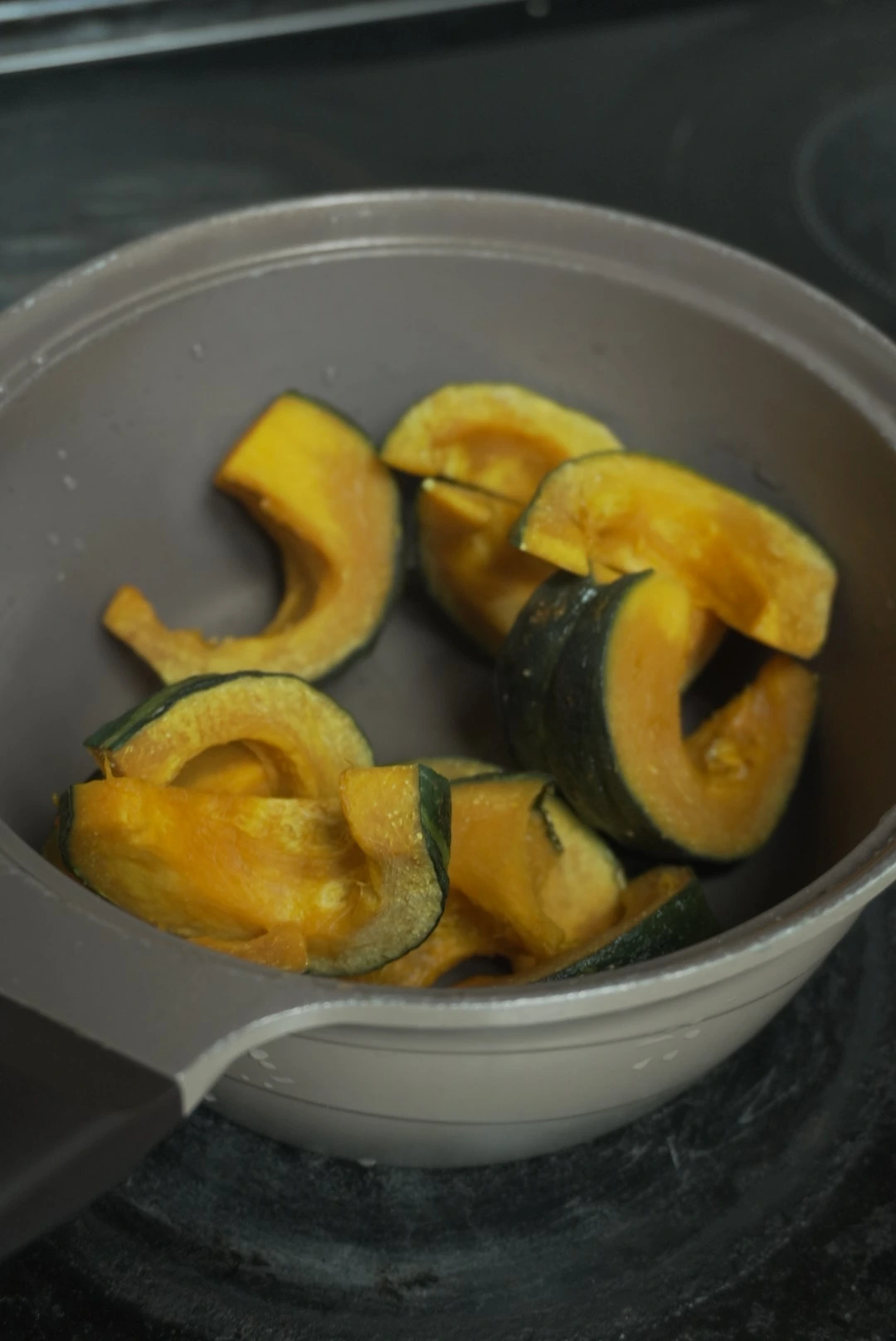 엄청 단순한 레시피. 단호박을 깨끗이 씻고, 안에 씨를 다 제거한 후에 사과처럼 자르고 전자레인지에 강으로 7분간 돌려준다. 다 익은 단호박을 우유와 함께 으깨면서 끓여주면 완성! 핸드믹서기로 곱게 갈아서 드셔도 좋고 식감이 있었으면 한다면 그대로 넣어 끓여도 괜찮다.
