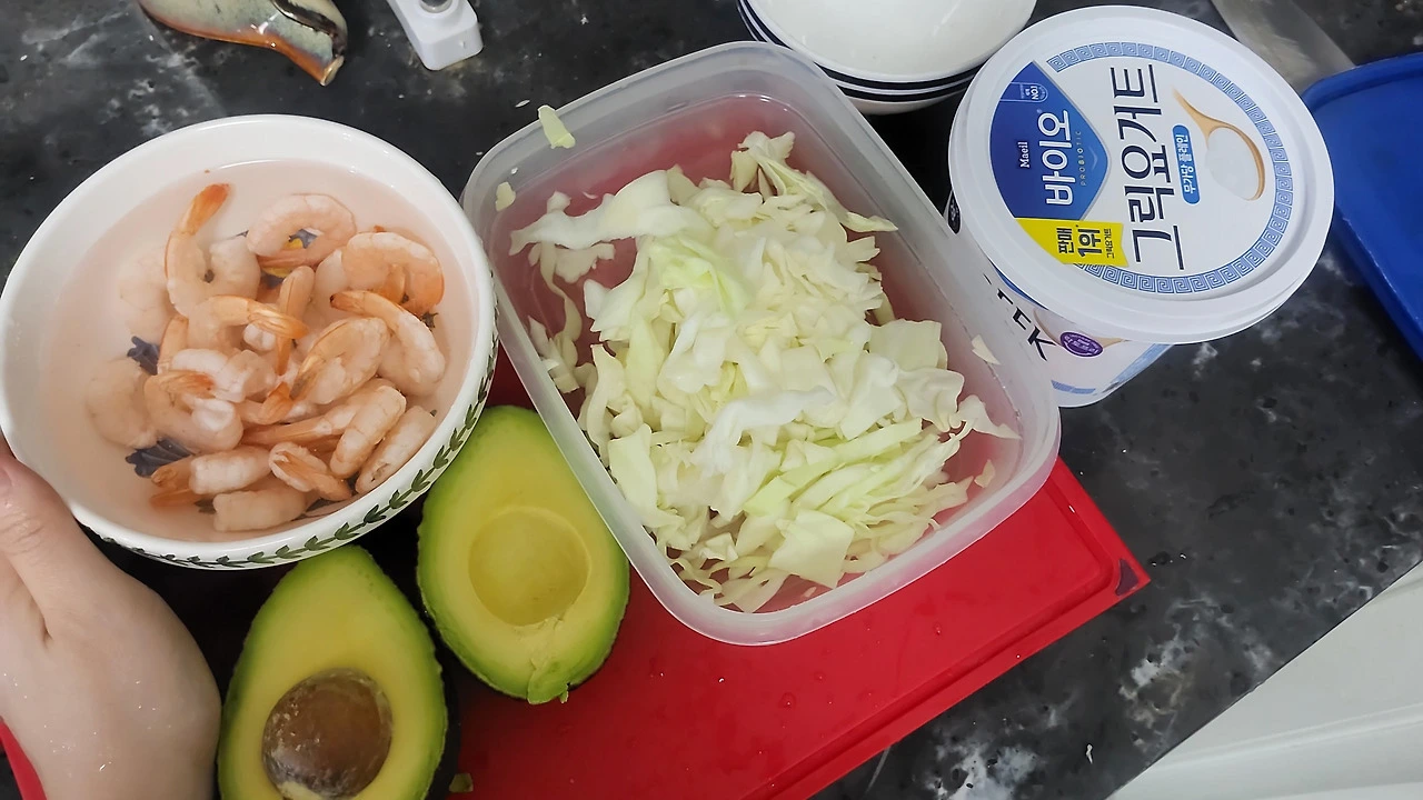 생각보다 손이 많이 가는 음식이지만 처음 만들어 본 것 치고는 맛있었다. 새우는 버터, 양배추, 후추와 볶은 뒤에 발사믹 소스를 넣어 볶아주면 된다. 타코 전용 소스나 가루가 있는것 같았는데 없어서 발사믹 소스로 대체해서 만들어봤고 레몬, 양파, 토마토와 궁합이 맞아서 맛은 조화로웠다.