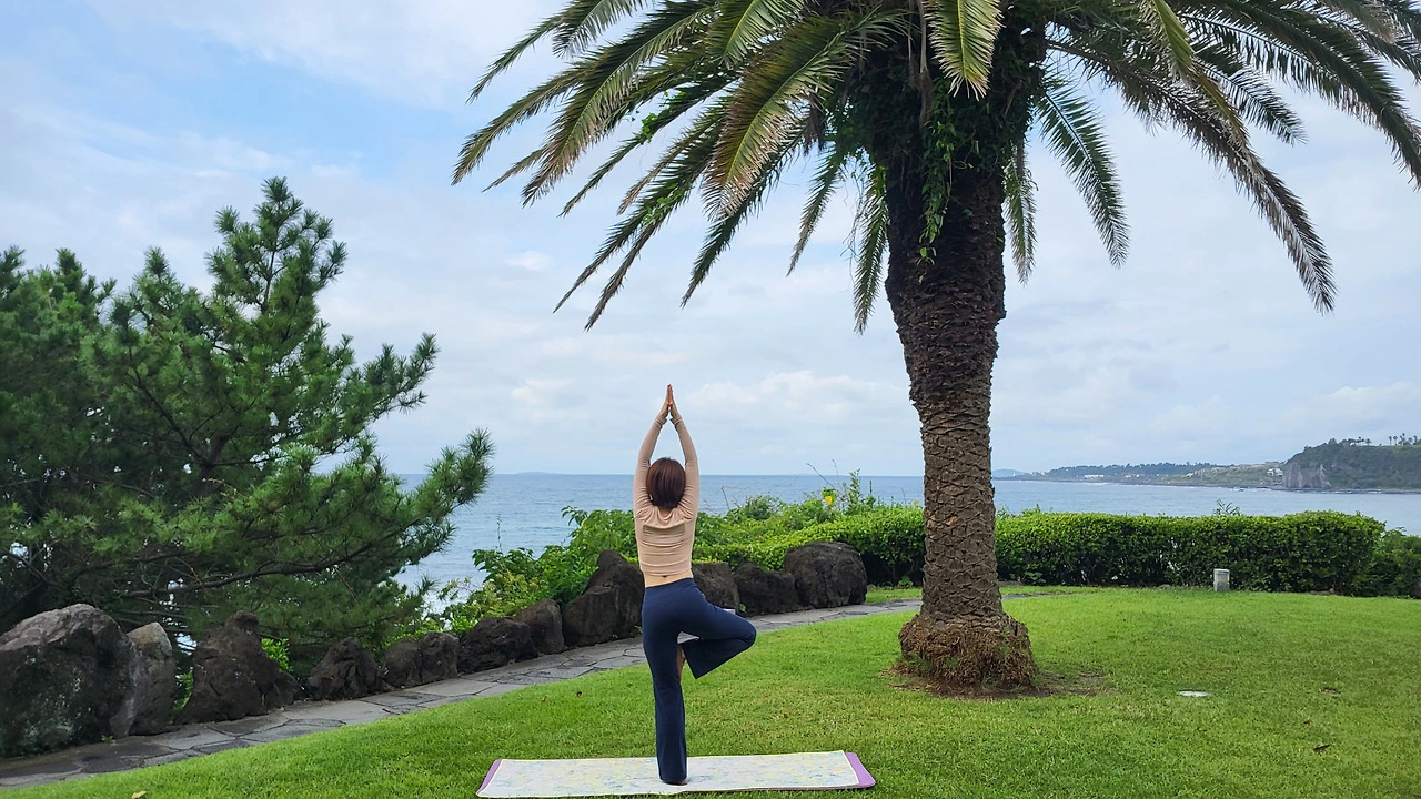 바다요가를 꼭 해보리라 하고 급히 예약했다. 금년은 계획된 루트 없이 돌아다니다 보니 제주를 덜 즐긴 것 같지만 하고 싶은 것 1-2가지 해도 여행은 충분하다. 바다요가 장소는 서귀포 중문관광로에 있는 퍼시픽 리솜이다. 기사님 말씀으로는 경치가 아름다워 촬영 장소로 유명하다고. 나는 수업 시간보다 조금 일찍 도착해서 바다를 더 오래 즐겼다. 수업은 기본 레벨과 난이도 있는 하타 요가를 했는데 오랜만에 안 쓰던 근육을 쓰니 좀 어려웠고, 끝날 때는 등 뒤로 땀이 맺혀 오히려 개운했다. 바다를 좋아하니 바다를 보며 요가를 해보고 싶었다. 아주 단순한 이유다.