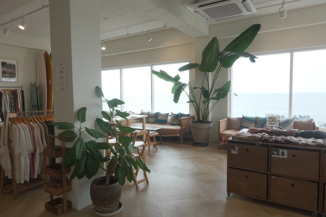 아무 생각 없이 해안도로를 따라가다 보니 보였던 반아울 편집샵 매장. 수영복도 있고, 몇 가지 티셔츠, 외투, 잠옷이 있었다. 커피도 판매했는데 따로 마시진 않고 조용히 둘러보기만 하고 나왔다.
