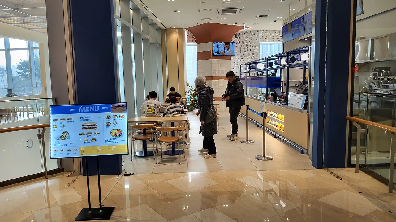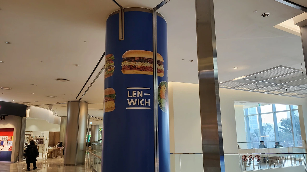 파란색은 어쩔 수 없이 식욕이 떨어지는 색이다. 그래서 대부분 음식 브랜드는 레드와 오렌지 계열을 브랜드 아이덴티티 색상으로 두곤 하지만, 해외에서는 블루, 녹색 계열도 종종 사용하는 걸 심심찮게 보곤 한다. 건강한 분위기의 헬스장 느낌도 나고, 녹색은 스타벅스(starbucks)처럼 중후하고 단단한 분위기를 연출한다. 리나스(LINAS)도 좋아하는 샌드위치 브랜드 중 하나였는데 지금은 롯데월드점에서는 철수한 상태다. 롯데월드몰 안에서는 매해 매월 다양한 브랜드들의 입점과 철수가 반복되는데, 특히 지하 1층에서는 팝업이 많이 이루어지다 보니 새로운 브랜드들을 자연스럽게 보게 된다.