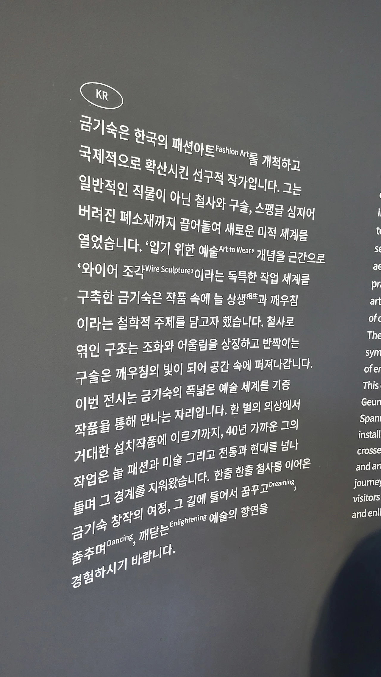 한국의 전통의복을 현대적으로 재해석한 작가. 내가 모르는 한국 작가들은 언제나 많다. 작품을 보러 가면 한국의 전통 저고리와 치마를 구슬로 꿴 여러 작품들을 만나보실 수 있다.