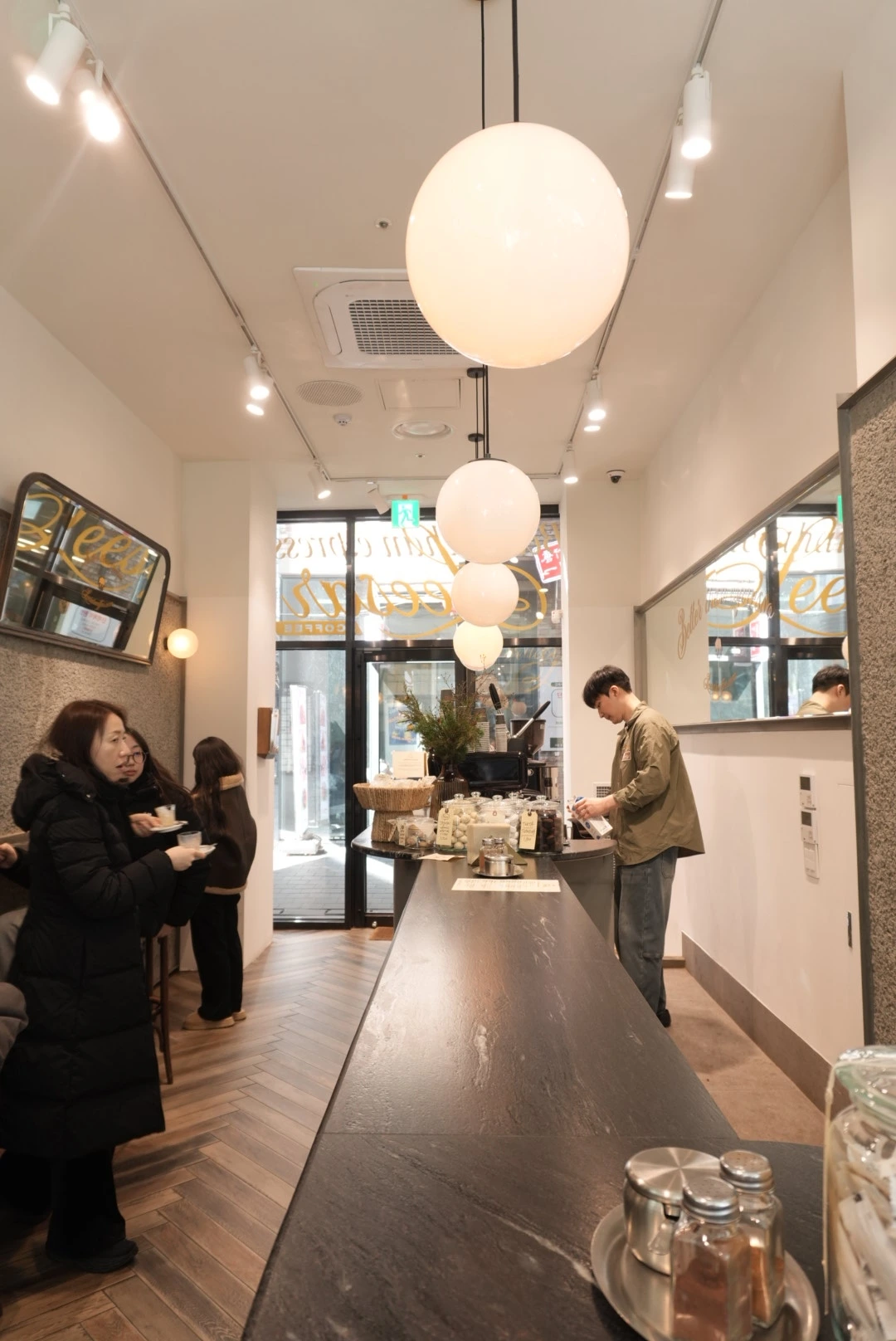 패키지가 기존에 보지 못했던 디자인이라 기억에 남는다. 초창기 보그 패션 표지나 한국 근현대 문학 표지 같은 판화 감성의 그로테스크 디자인이었다. 콘셉트가 명확해서 좋았고 명암, 색조 대비가 강렬한 것과 어울리는 에스프레소였다. 맛은 부드럽다기보다 짙고 중후하고 약간은 쌉쌀한 쓴맛도 느껴졌는데 나에겐 조금 세서 저 작은 잔을 3분의 1이나 남겼다. 공간은 넓진 않지만 전반적으로 분위기가 유럽 감성이라 한 번쯤 가보길 추천하고 싶은 곳이다.