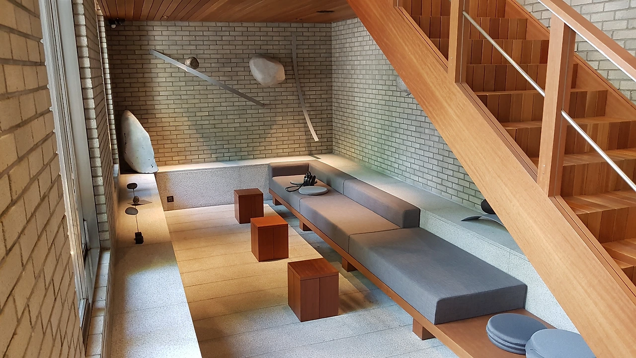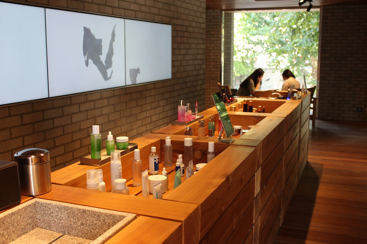 인테리어적인 측면에서 듀펠센터와의 차이는 자연을 강조하고 휴식하는 분위기를 잘 연출한 점이다. 코스메틱 브랜드에서 건강한 피부를 모토로 하기에차와 자연은 잘 맞는 궁합이다.