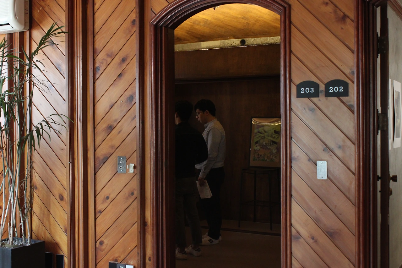 오래된 주택을 개조하여 만든 공간 2층 오래된 나무벽으로 이루어진 주택 2층은 사람들과 소통의 공간 겸 전시 공간으로도 이용된다. 말끔한 느낌보다 어린 시절 친척집에 놀러 간 것 같은 향수를 불러일으킨다. 여러 클래스 중 기억에 남는 건 프리랜서 아티스트들과 모여 만든 전시 프로젝트 taste taste인데 전시를 통해 다양한 연령대의 관람객과 소통할 수 있어 일상의 무기력을 조금이나마 줄일 수 있었고 여전히 좋은 추억으로 간직하고 있다.
