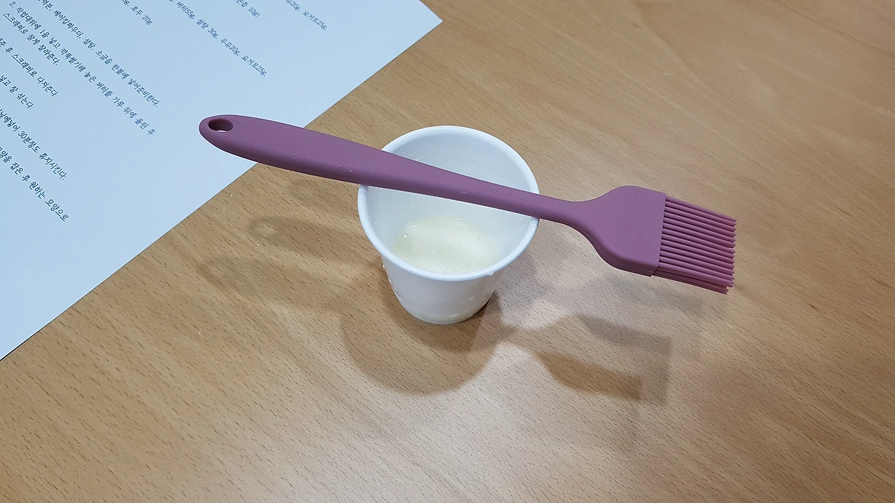 4. 반죽 위에 계란을 발라준다