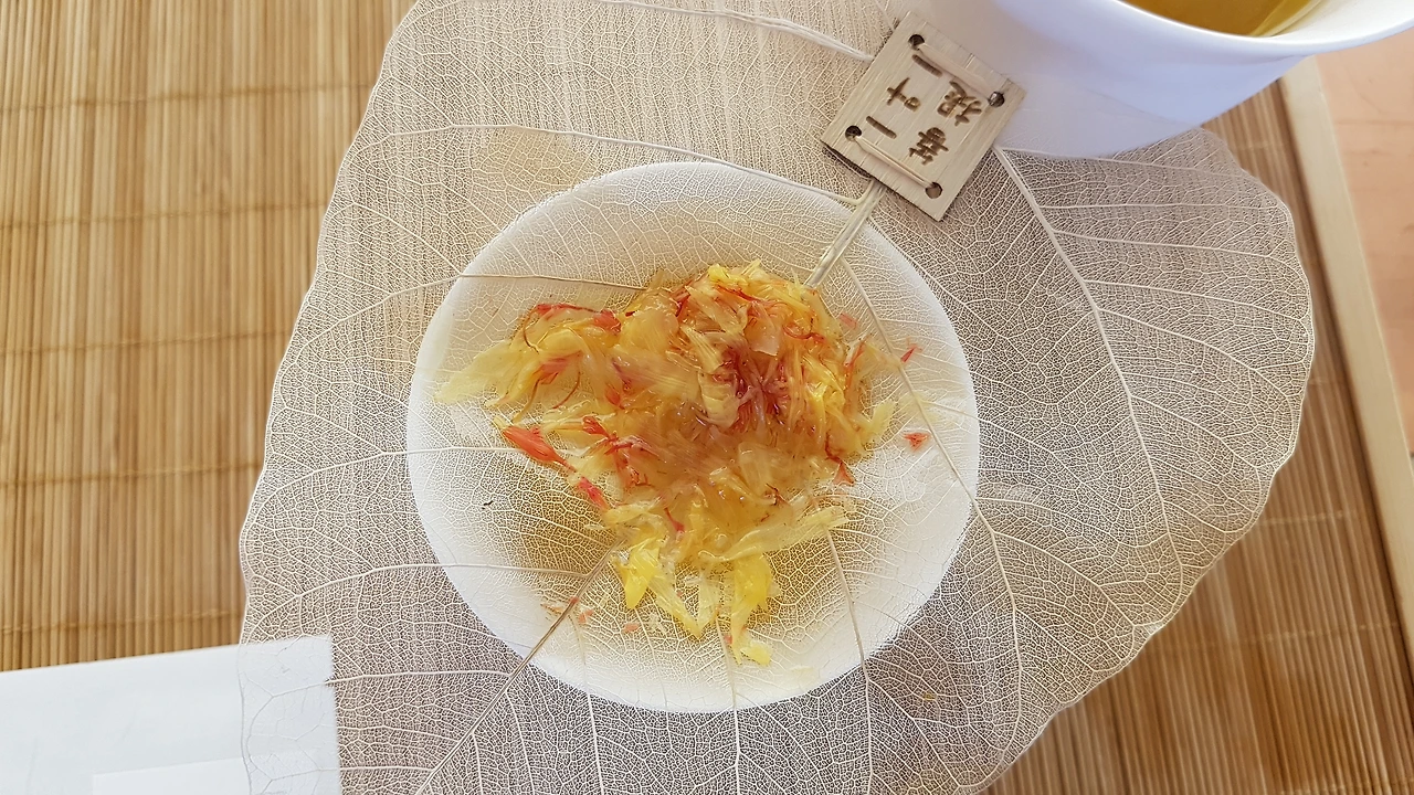 주문한 여름 차로 파인애플과 망고가 블렌딩 된 시원한 차다. 양이 많지 않아 두 잔은 마셔야 될 것 같았다. 나뭇잎 모양의 거름망이 예뻤다.달달하고 상큼하니 맛있었고 망고차라 해서 갸우뚱했는데 여름엔 망고, 리치, 코코넛 같은 열대 과일로 만든 식품이 잘 판매되니 차와 조합돼도 이질적이진 않았다.