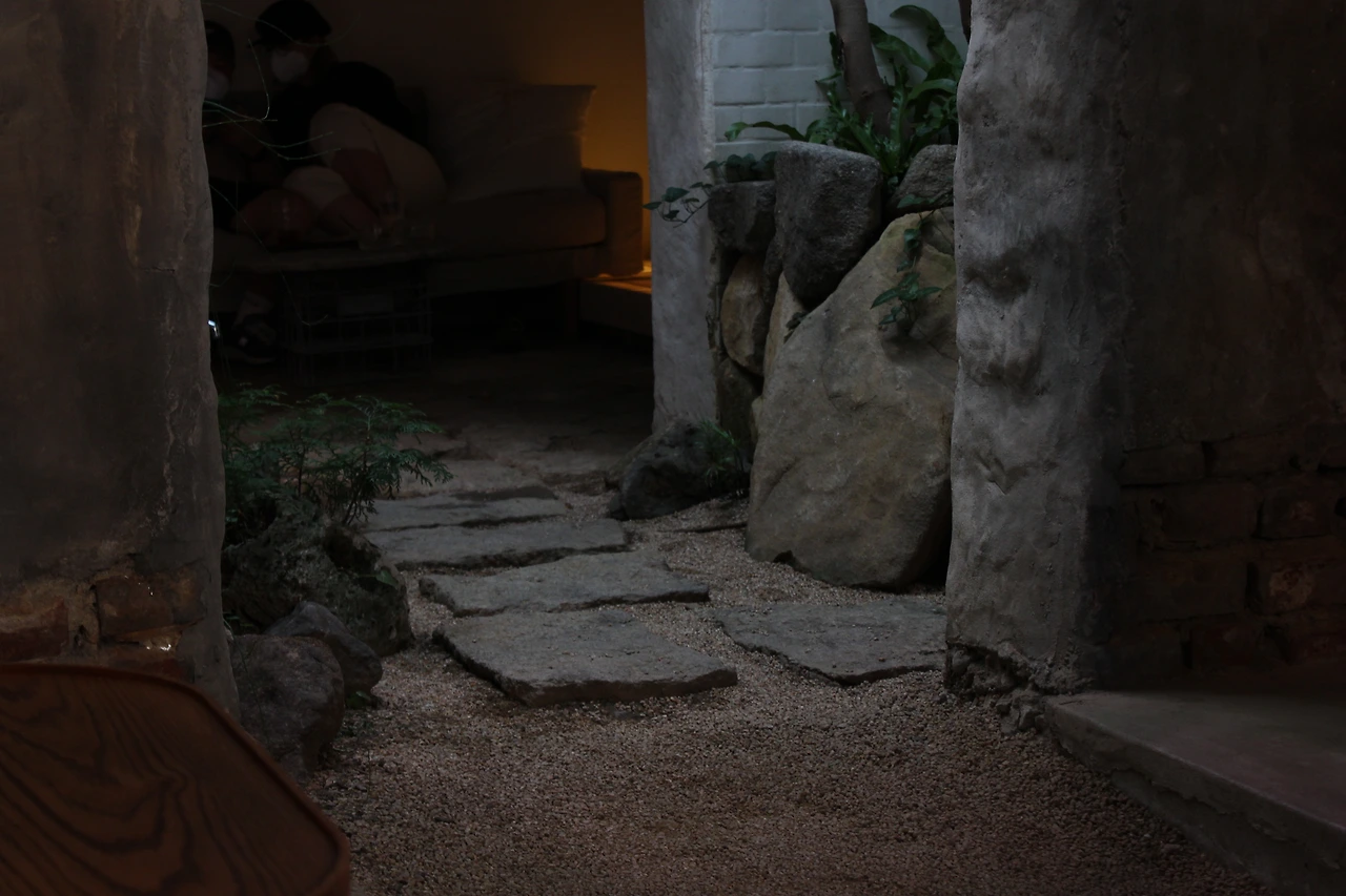 eert매장 외관eert에서 눈에 띄는 인테리어가 몇 가지 있다. 1층 카운터부터 반대편 벽면 끝까지 노란 조명 빛으로 마감돼있다. 자리에 앉아 있으면 종교적인 느낌도 들고 답답한 느낌보단 되려 멍하게 만든다. 명상하는 분위기도 연출되고 조용히 시간을 보낼 수 있는 분위기가 조성되어있다.