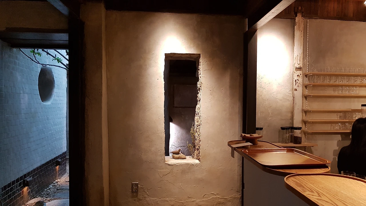 공간 내 특이한 구조차 마시는 과정을 보는 것도 좋았지만 공간 내에 천장에 뚫린 원 모양 구조도 재밌었다. 햇볕이 드는 날은 빛이 들어와 방 바닥면에 달이 뜨는 모습을 연출한다고 한다. 이 날은 날이 흐려 보지 못했지만 작은 공간 안에 하늘과 달을 녹여낸 아이디어가 감성적이다.
