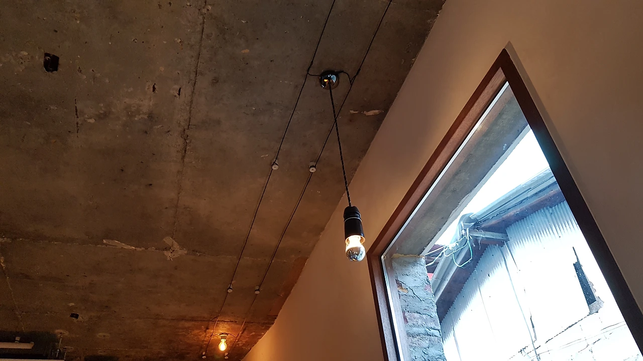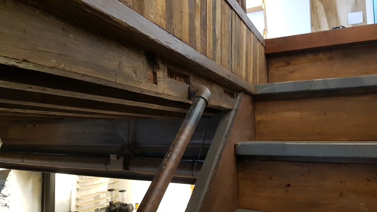나무 상판에 앉아 마시는 모습공간 입구부터 들어서면 오래된 목조 계단과 녹슨 파이프로 만들어진 계단 손잡이를 볼 수 있다. 공간 내 운영자의 이야기가 담긴 인터뷰 지를 보니 지금의 레레플레이는 여인숙을 리뉴얼한 공간이라 한다. 운영자인 윤이서 디자이너는 공간 고유의 인테리어를 유지하고 싶어 했고 실제로 방문한 공간을 둘러보면 창문 밖 철창이며 천장 모두 새 것이 아니다. 상호인 레레는 re 다시 쓰임을 뜻하며 이름처럼 그녀의 철학이 잘 녹아든 모습이다.