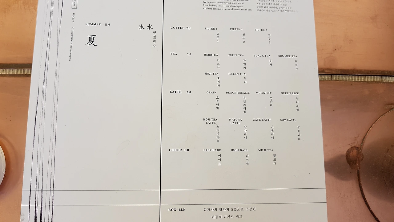 주말에 방문하여 조용히 둘러보고 싶었지만 그새 유명세를 탄 건지 앉을자리가 없어 오래 있지 못했다. 공간에서 본 생소한 모습은 매장 앞 좁은 통로 사이로 오토바이 한 대가 물고기 헤엄치듯 골목을 빠져나가는 모습이다. 충무로 인쇄소나 을지로 골목길에서 심심찮게 볼 수 있는 광경이지만 이 고즈넉한 찻집 앞을 쌩하고 지나가는 걸 보니 80-90년대 드라마 세트장에 앉아있는 것 같았다. 오래된 것들이 남아있을 때 주는 매력이다.