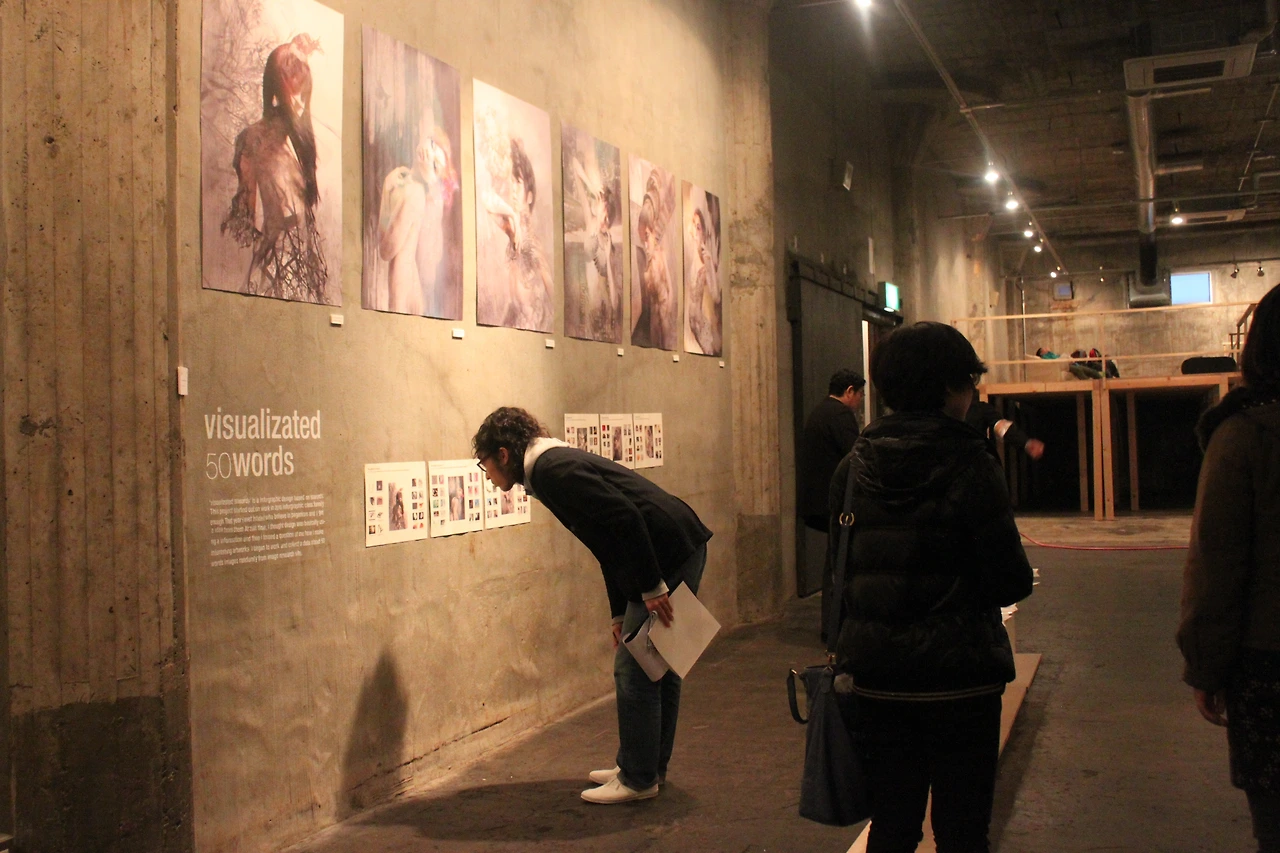 수업이 끝난 후, 미쳐 마무리하지 못한 과제 인 '언어의 시각화'를 완성하여 전시할 수 있는 방법이 무엇일까 고민했었다. 그러던 중 우연히 벽면에 붙여진 '한일 연합 그룹 전시회' 포스터를 발견하게 된 것이다. 일본에 대해 큰 관심은 없었지만 새로운 걸 할 수 있다는 기대가 있었고 뭔가를 표현할 수 있다는 건 즐겁게 느껴졌다. 그 이후, 집 근처에 작업실을 얻어 겨울이 다 지나도록 대형 포스터 작업을 천천히 해나가기 시작했다. 정말 추웠는데 무슨 생각으로 그렇게 오랫동안 준비한건지 잘 모르겠다. 시간이 지나면 또 다른 곳에 열정을 쏟을 것이 분명한데 항상 그 상황이 되면 어쩔 수 없이 그 하나에만 빠지곤 한다.