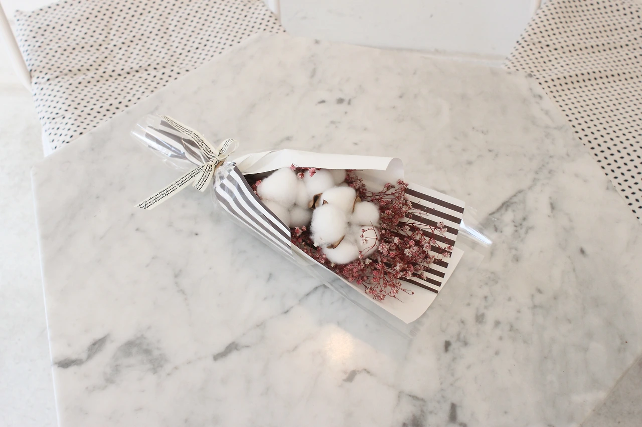 전시 중 선물 받은 드라이 플라워 꽃다발