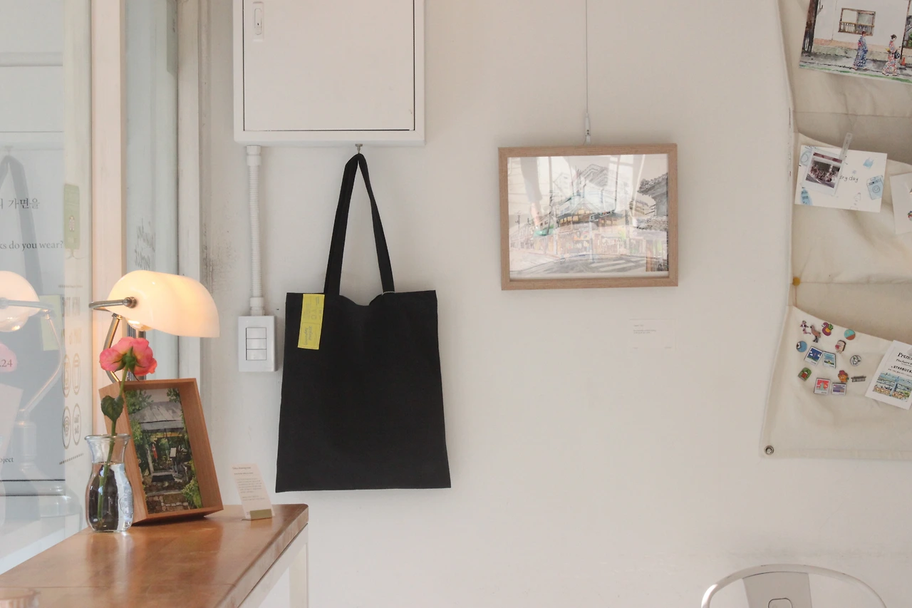 런드리프로젝트의 공간적 특성은 하얀 벽면과 전반적으로로 물건이 많은 편이지만 흰색 벽면 덕분에 작품을 디피하기가 오히려 쉬울 수도 있다는 점이었다. 그리고 스탠드 겸 좌식형 테이블이 있어서 공간에 액자나 책을 소박하게 디스플레이 할 수 있다는 장점이 있었다. 하루 이틀 정도는 공간을 파악하고, 여백이 없고 꽉 들어찬 공간에는 풀어지는 힘이 있어야될 것 같았다. 힘이 응집되려면 비워지는 곳도 있어야 조화가 있기 때문이다.