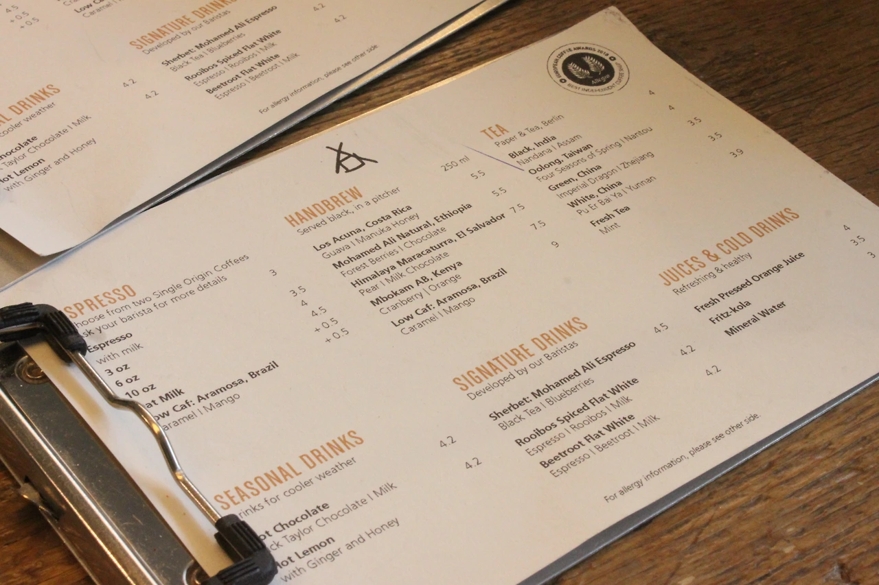 더반 메뉴판몇 일 전 카페쇼에 더 반이 참가했다는 걸 우연히 알게됐는데 참 커피가 난리다. 원두 가격도 올라간다고 하던데 오를대로 오르면 집에서 만들어 마시는 문화도 생기지 않을까.