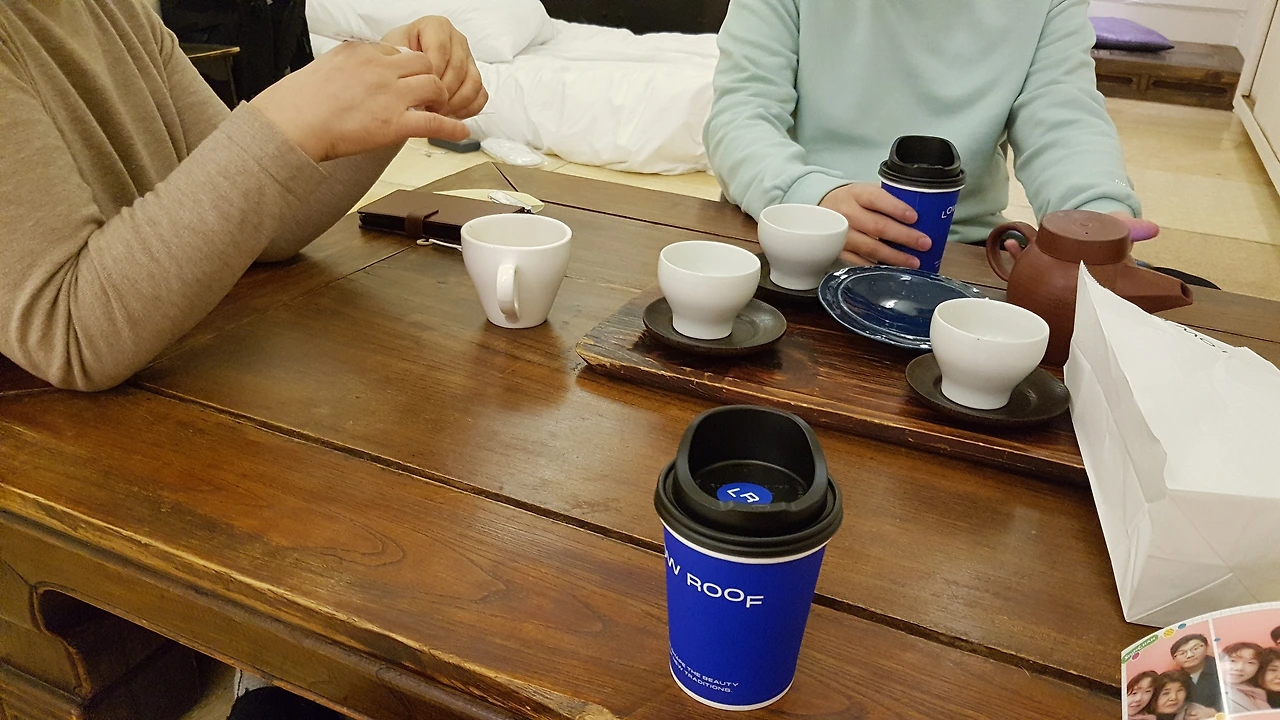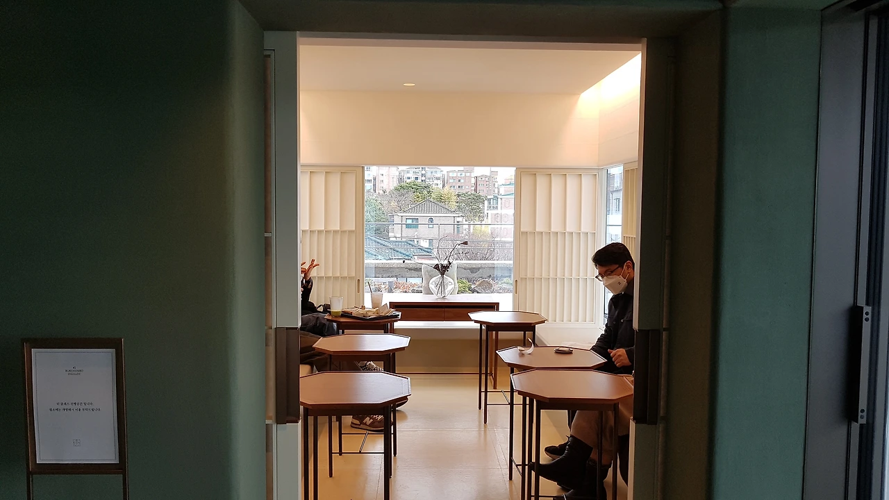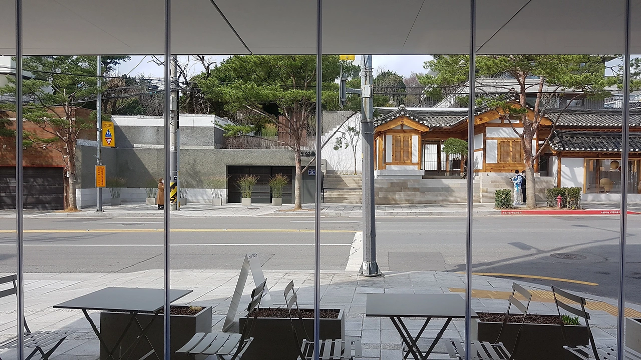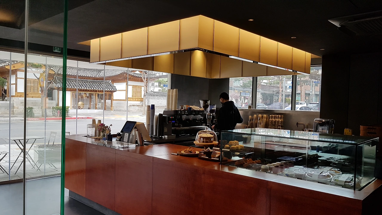숙소로 들어가기 전에 근처 카페에 커피 두 잔을 챙겨 들어갔다. 숙소 골목에서 나와 대로변 쪽으로 5분도 체 안 되는 거리에 로우 루프 카페가 자리 잡고 있다. 근처에 계동 이잌 이라는 카페 겸 바가 있어서 가볼까 했지만 1박 2일이라는 시간 관계상 계속 움직이기가 피곤하여 숙소 근처에 있는 카페에서 오트밀 카페라테, 아메리카노를 주문했다. 첫날은 날이 좀 많이 흐려서 주변에 예쁜 한옥이 잘 드러나지 않았는데, 숙소에서 퇴실하는 날 오전에 카페에 가니 통창으로 햇빛이 밝게 들어오고 대로변 맞은편에 한옥들이 보여서 기분이 좋았다. 조용한 동네고 일상 속에서는 온전한 고요함을 찾기가 너무나 어려운데, 이곳에서만큼은 단 하루만이라도 고요를 느낀 날이었다.
