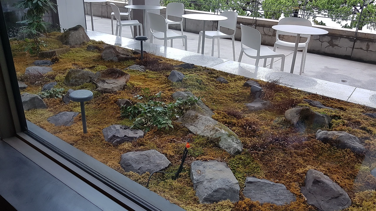 색감과 인테리어에 반하게 된 오설록 티하우스. 내 집을 이런 색깔로 꾸미면 좋겠다 싶을 정도로 색감 구성이 마음에 들었다. 오설록 티 하우스 창 밖에는 잔디, 돌, 이끼, 나무를 심어놔서 자연을 느낄 수 있고 북촌에 주로 보이는 한옥 지붕, 시멘트 재질의 거친 벽면들과 혼재되어 자연스러워 보였다. 공을 많이 들인 인테리어로 보였다.