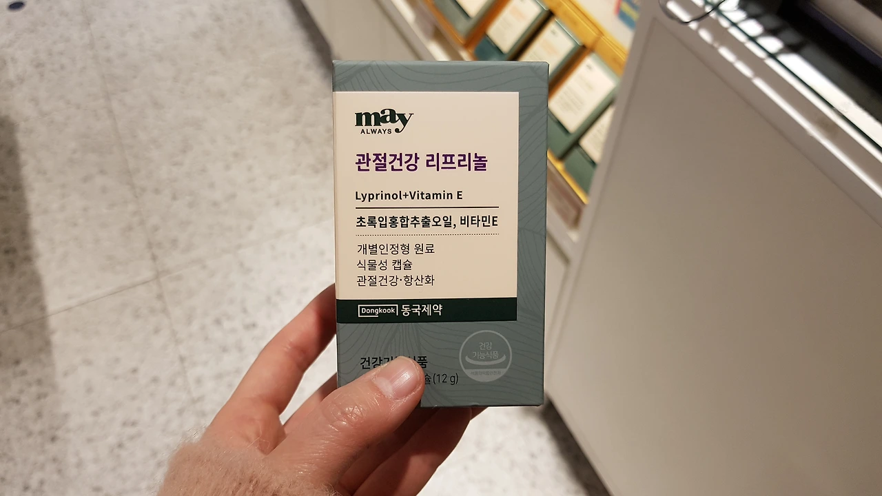마지막으로 집 들어가기전에 나이가 드시니 관절도 안 좋아지시는 듯 해서 동국제약에서 나온 관절건강 리프리놀이란 비타민 보조제도 구매했다. 홍합에서 뽑은 추출물이라는데 금액은 30정에 9만 원대고 아직 안드셔보셔서 효과가 있을지는 모르겠다.