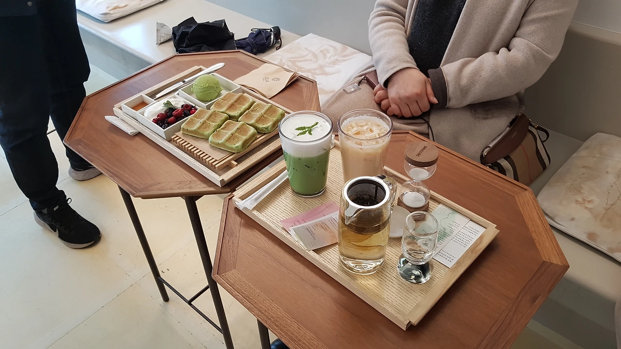 한동안 공간을 잘 많이 안 돌아다니게 돼서 오랜만에 오니 신선한 느낌도 들고 시각적으로 개안한 기분이었다. 원래 가고 싶었던 이유는 차와 칵테일을 믹스해서 만든 메뉴가 궁금해서 와봤는데 막상 가니 가족들과 온 관계로 칵테일 마시기엔 애매한 시간대라 주문하기가 어려웠다. 연인들에겐 저녁 시간대에 오붓하게 칵테일 한 잔 하며 시간 보내기 좋을 것 같다.