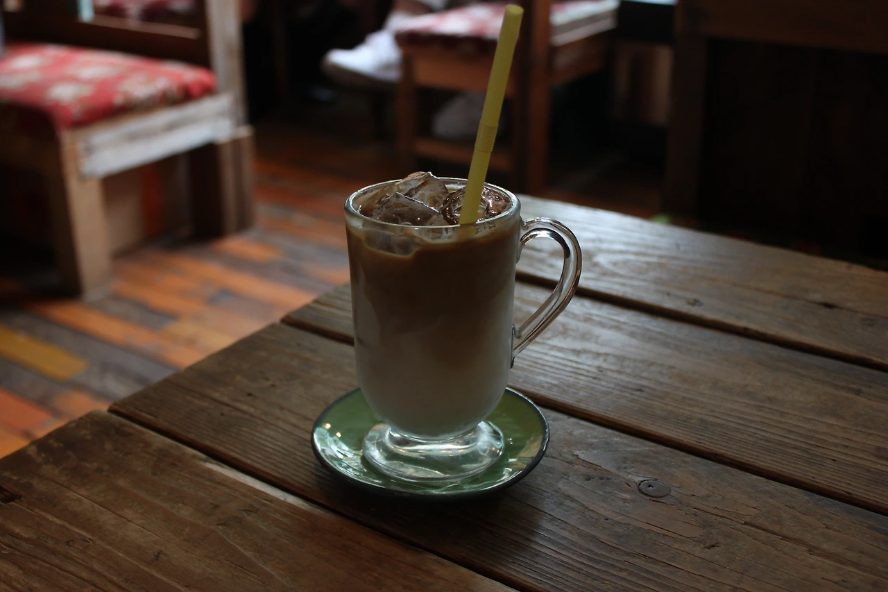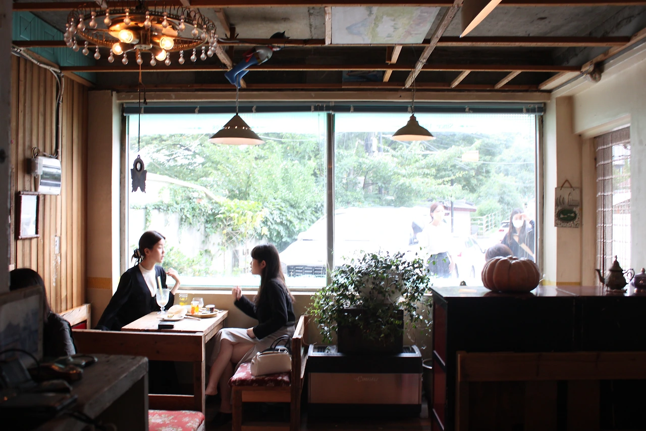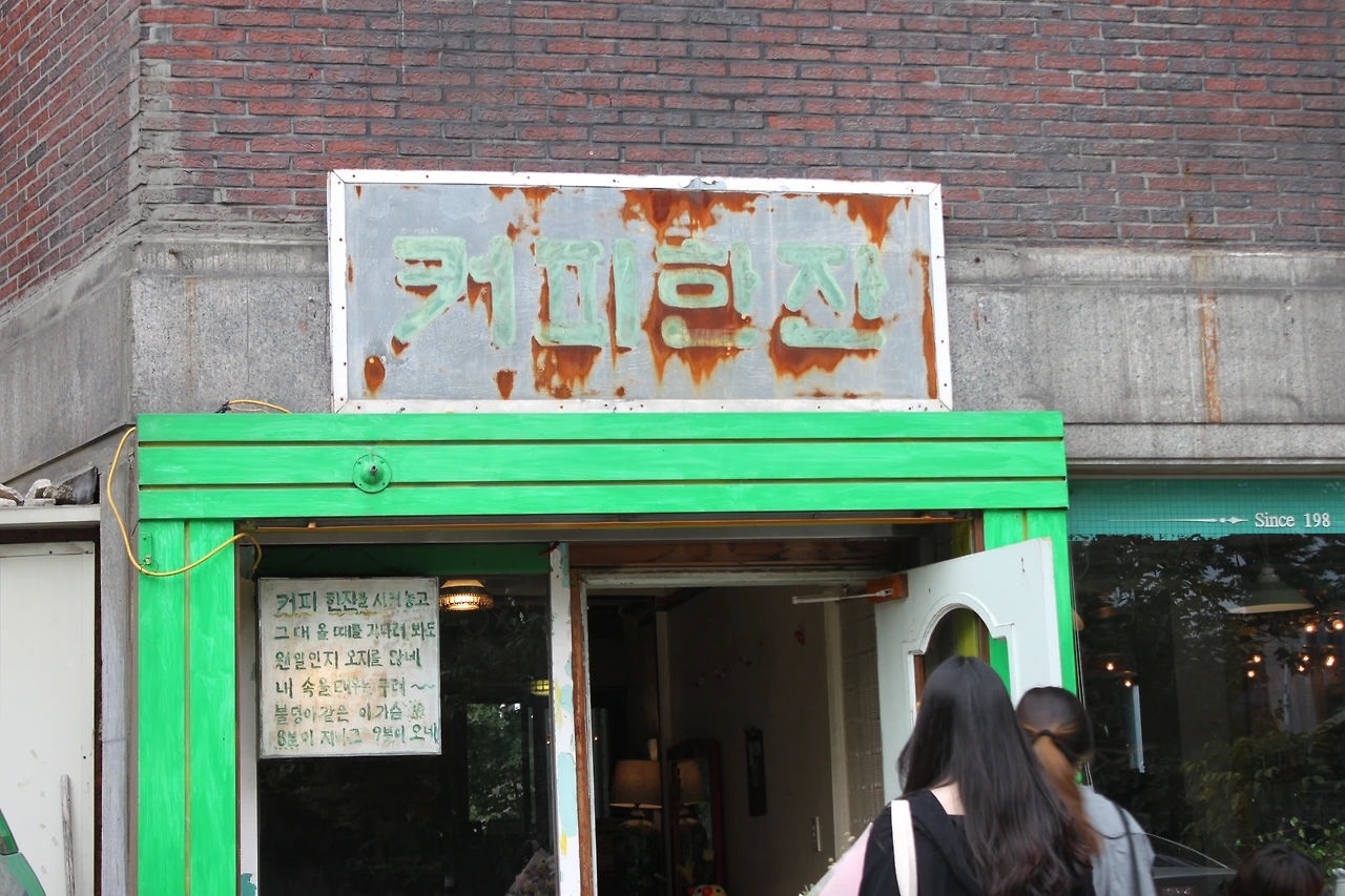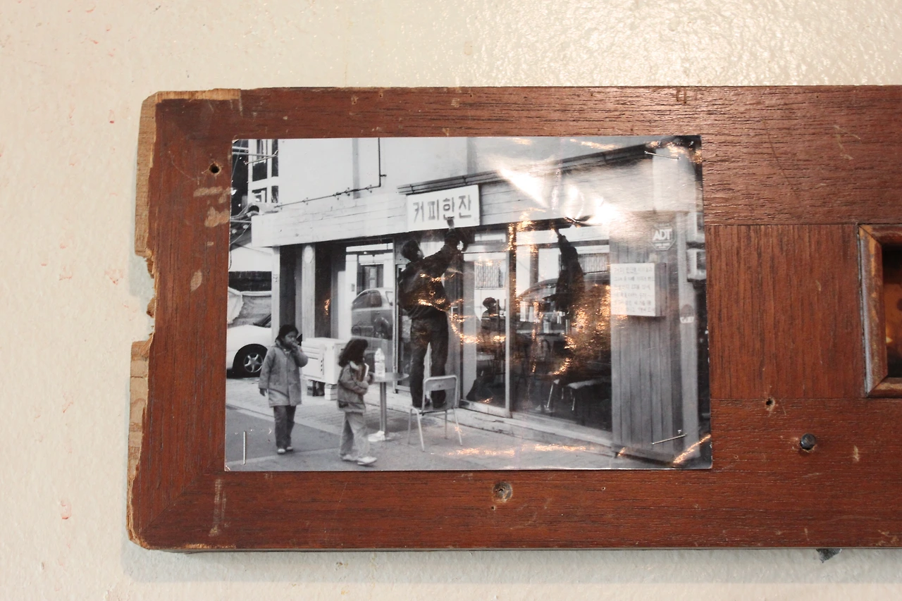 카페엔 그 흔한 포스기는 없었고 유일한 현대식 문물은 카드 단말기에 주문은 메모장에 받아 적으셨다. 주문한 카페라테에 한 샷만 넣어달라고 요청드리니 드립 커피라고 하셨고 을지로에서 볼 법한 오래된 유리잔에 노란 스트로를 자리로 가져다주셨다. 요즘 친구들이 쓰는 맵찔(매운 걸 못 먹는 사람), 알코올 쓰레기(술을 못 마시는 사람)라는 말이 있다면 나는 카페인 쓰레기라 내심 두근거리며 커피 한 모금을 조심스럽게 마셨다. 다행히 아무 이상 없이 마실 수 있었고 보면 볼수록 내가 사는 동네에서는 도저히 볼 수 없는 분위기라 여행 온 것 같았다.
