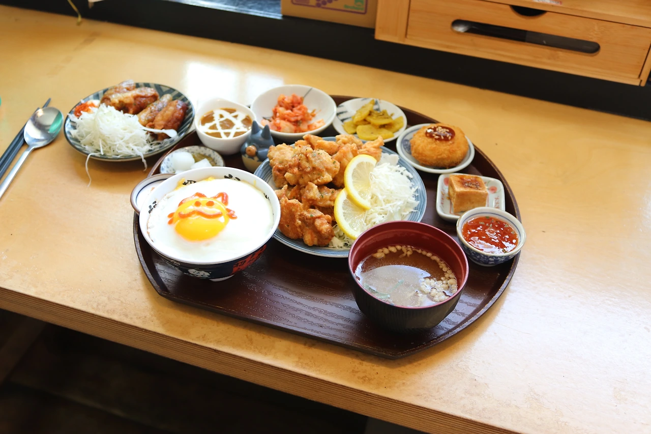 귀여운 것보다 맛을 선택하는 편이지만 이렇게 귀엽게 플레이팅 하여 음식이 나올 거라곤 상상 못 했다. 소꿉놀이 하는 느낌이랄까... 나와는 영 맞지 않는 느낌이었지만 어린 친구들이나 아이를 키우는 가족들이 오기 좋은 음식점 같았다. 귀여운 계란프라이와 닭고기 튀김, 그리고 닭껍질 튀김이 함께 나온다. 약간 느끼 할때마다 미소된장과 김치를 연신 먹었다.