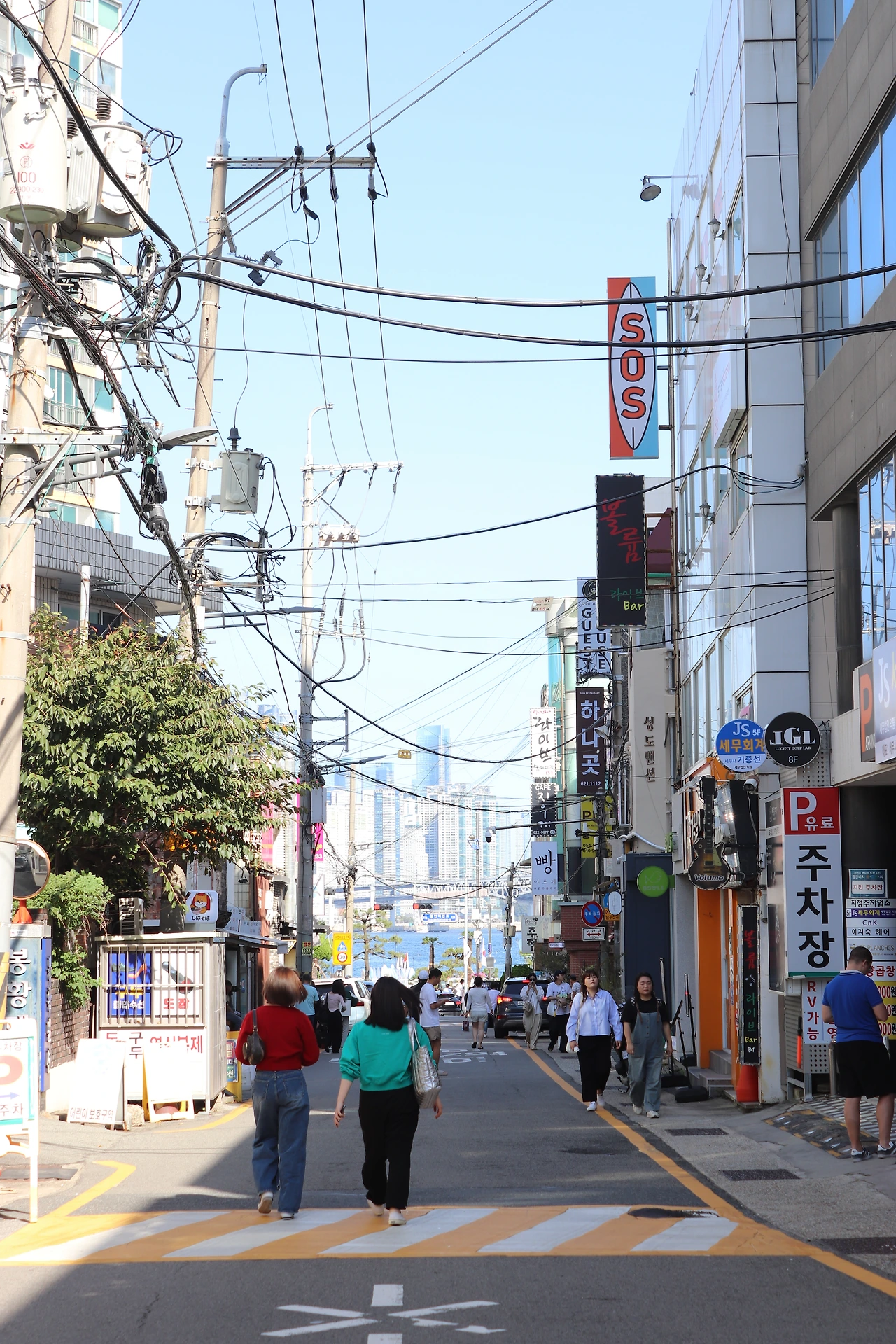 여행 둘째 날, 삼성헬스 앱으로 확인해 보니 20,000보를 걸었다. 16.42km라니... 웬만한 곳은 거의 걸어 다녀서 운동화 안 챙겨갔으면 무릎이 상할 뻔했다. 부산에서 택시가 잘 잡힐 줄 알고 맘 편히 생각하고 있었건만 연휴라 바로 잡히지 않고 근거리 이동이어도 차라리 걷는 게 나을 정도로 해변가는 북적거렸다. 간혹 수영복을 입고 태닝 하시는 분들도 있었지만 해변가 앞에서 돗자리를 펴거나 대형 천막 우산에 햇볕을 피해 쉬고 있는 분들이 대부분이었다.