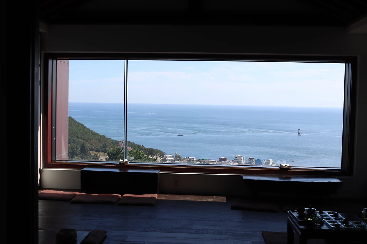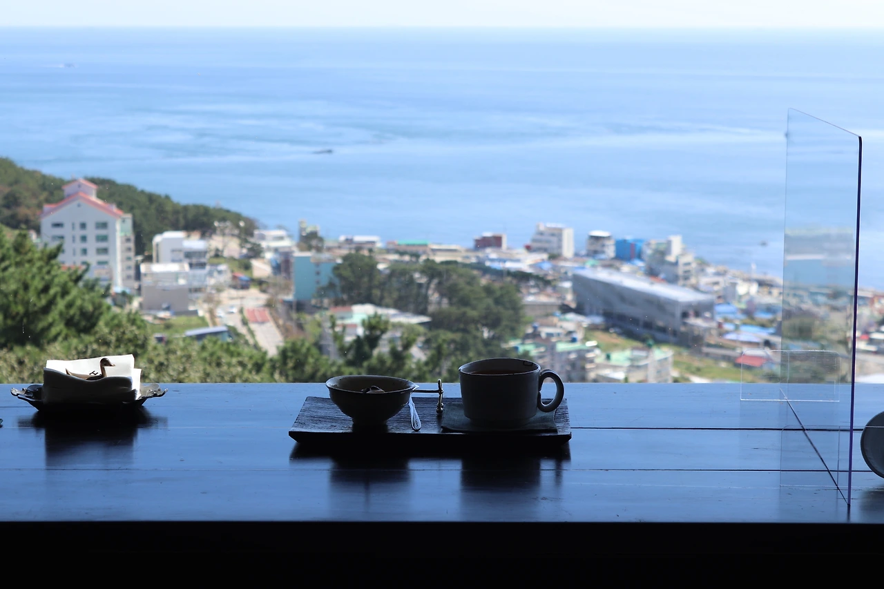 부산에 온 이유는 오로지 바다를 보기 위함인지도 모른다. 이것저것 보러 돌아다니긴 했지만 바다가 아니었다면 굳이 부산에 오지 않았을 거다. 장산역에서 30분 거리에 위치한 곳으로 창 너머 달맞이길과 골목 사이로 차들이 작은 점처럼 보였다. 아침에 일어나 가볍게 호텔 조식을 먹고 어딜 갈까 고민하다 커피 대신 차를 선택하길 잘했다.