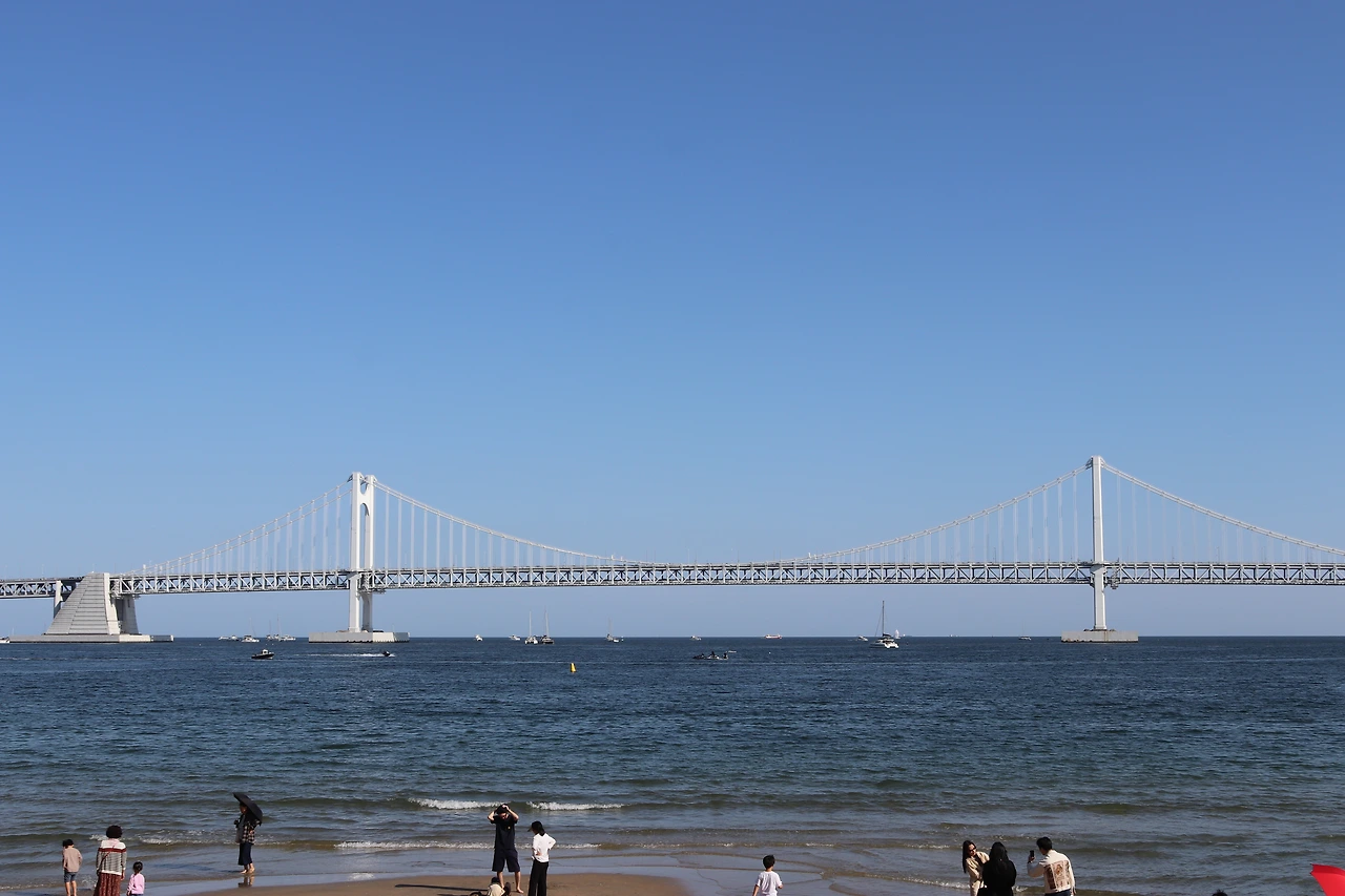 저 멀리 길게 늘어뜨려진 광안대교가 보였고 짙고 푸르른 바다와 흰색의 구조물이 대비되었다. 가족, 연인, 친구 단위로 다양한 사람들이 모여있었고, 간혹 웃통을 벗고 열심히 뜀박질하시는 분들도 보였고 강아지와 함께 해변을 거닐던 산책자들도 있었다. 3년 전까지만 해도 과연 마스크 벗고 돌아다닐 일이 생기기나 할까 싶었는데 이제는 정말 마스크 쓴 사람들은 거의 보이지 않는다. 부산역에서 간혹 마스크를 쓴 한 두 명만 봤을 뿐 길고 긴 우울의 터널도 지나간 건가 싶다.