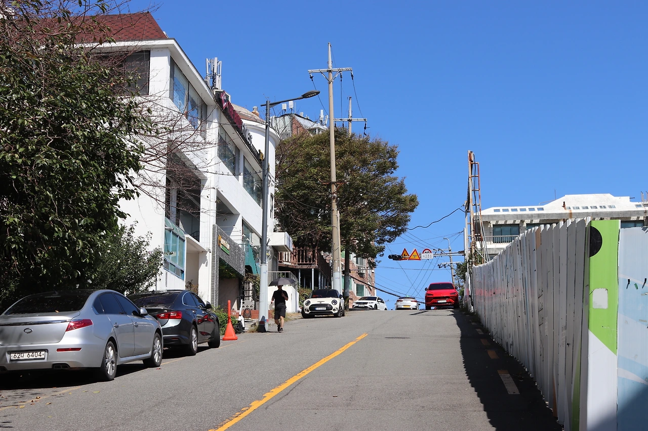 골목은 특별히 볼 것이 많이 없었지만 오래된 빌라명과 아파트 브랜드 명이 서울보다 훨씬 많이 보였다.