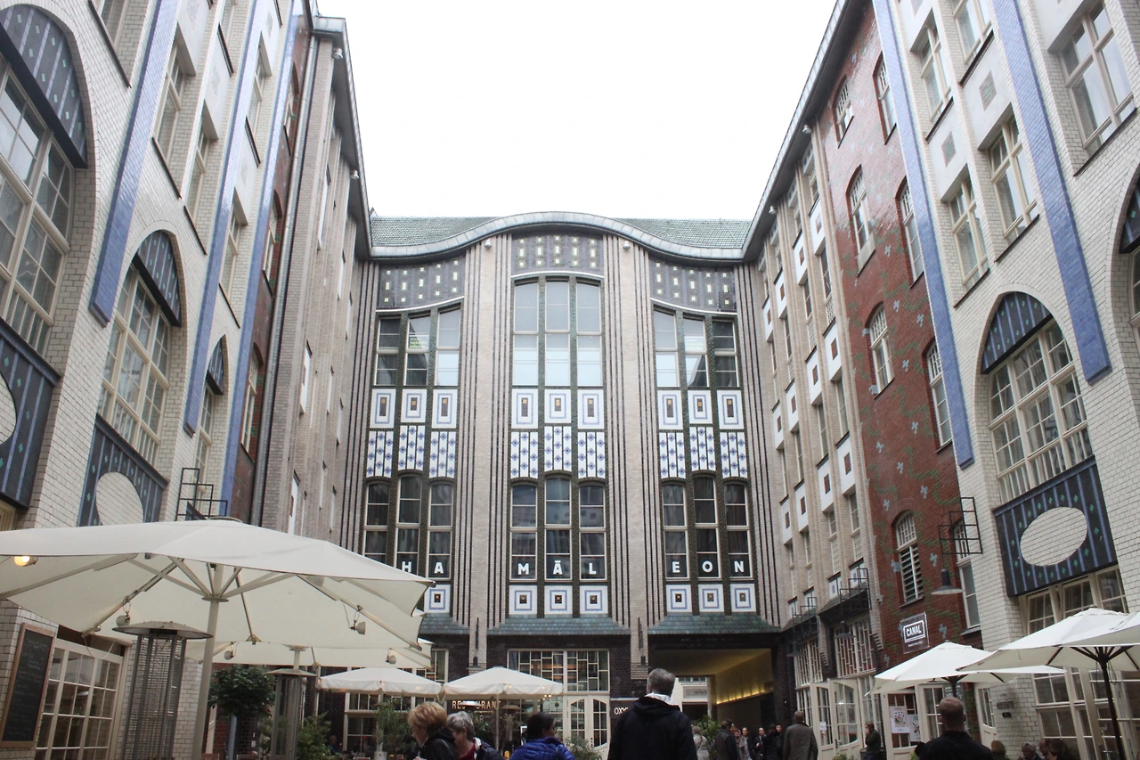 하케셔 회페는 하케셔 마르크트에 가까이 위치한 복합 건물이다. 내부는 8개 공간이 교차하여 이루어져 있고 디자인은 August Endel의 아르누보 스타일로 만들어졌다. 아래의 이미지로 보시다시피 입구에 들어서면 제일 먼저 보이는 공간은 다색화로 칠해진 벽돌 장식이 보이고 이 건축물 프로젝트는 1906년에 시작되었다고 한다.