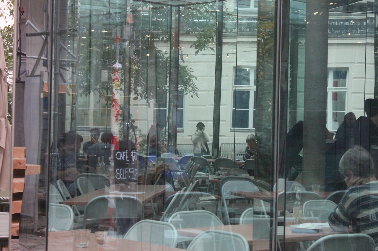 거울로 만들어진 것 같은 카페 외관. 신기했다. 사진을 찍으면 공간 안에 있는 거울에 내가 비춰서 구조가 어떻게 되어있는지 궁금했는데 이 카페는 들어가 보진 않고 다음 장소로 이동했다. 베를린의 여러 공간들을 방문하면서 알게 된 건 공간 자체를 없애거나 새로 짓는 것이 아니라 원래 있던 공간을 잘 개조하여 사용하는 모습이었다. 공장이 미술관으로, 디스코장이 음식점으로, 패션 스튜디오가 음식점으로.