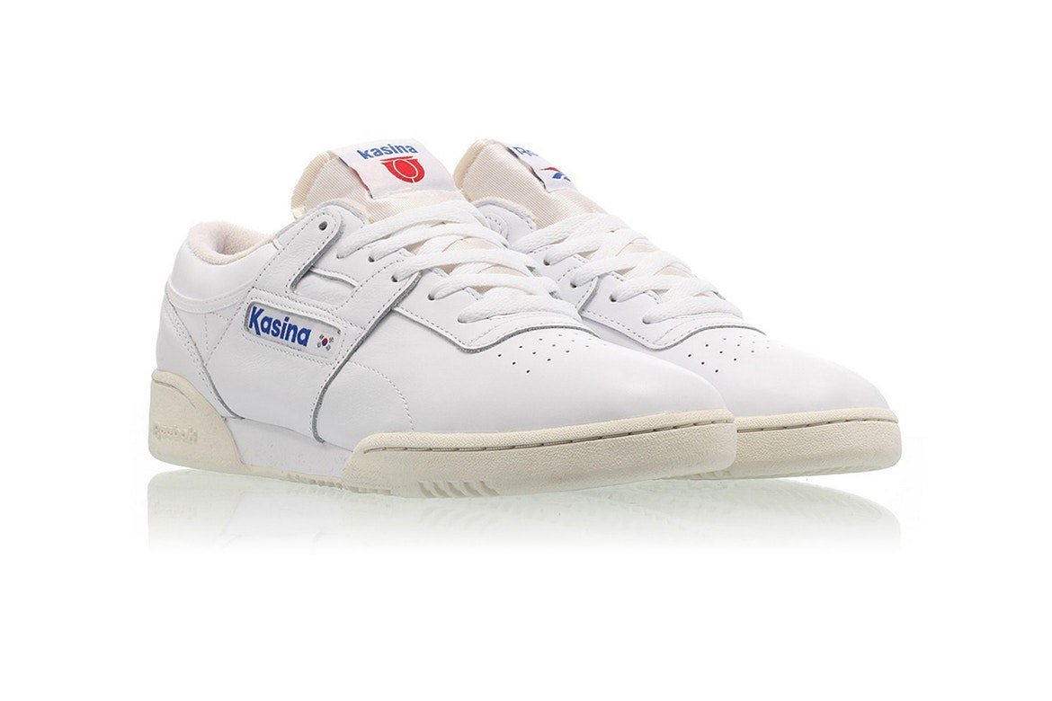 1987년 출시된 리복의 대표 스니커즈인 워크아웃 30주년과 카시나의 20주년을 기념하여 2017년 리복과 카시나는 콜라보레이션 제품을 발매했습니다. 흰색 가죽 갑피의 클래식 벡터로고를 기반으로 한 심플한 디자인에 힐탭에는 카시나의 창립연도인 ‘1997’이, 그리고 오른쪽 신발에는 영국국기 대신 태극기를 삽입해 포인트를 주었습니다. 이외에도 카시나와 리복은 2014년 인스타펌프 퓨리 20주년을 기념하는 중후한 컬러감의 제품과 2011년 지역 야구팀 롯데 자이언츠의 오리지널 컬러인 하늘색 스웨이드를 기반으로 아기자기한 디테일을 더한 AXT펌프 ‘Kasina Giants’ 제품을 내놓은 바가 있습니다.