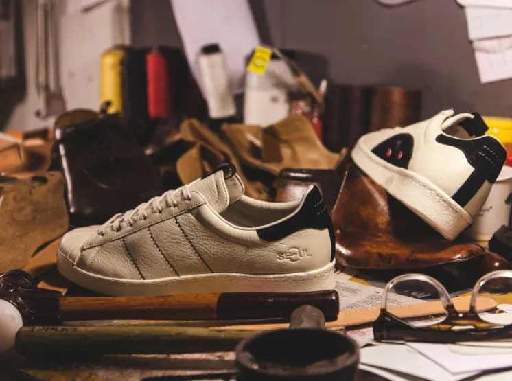 2005년부터 아디다스는 전세계 각지의 리테일스토어, 브랜드, 아티스트 등과 협업하여 컬렉션을 내놓는 아디다스 컨소시엄 프로젝트를 진행하고 있습니다. 국내 유일의 아디다스 컨소시엄 파트너인 카시나는 2016년 아디다스 컨소시엄 투어 중 전 세계 8번째로 콜라보 제품을 내놓았죠. 카시나는 아디다스의 대표 아이코닉 스니커즈인 슈퍼스타를 재해석했는데, 삼선 스트라이프를 얇은 스티치로 처리하고 힐탭에 본인들 브랜드 네임의 초성(ㅋㅅㄴ)와 건곤감리, 서울(SE~UL)을 각인해 특별함을 더했습니다. 소재에서도 부분적으로 스웨이드를 넣어 고급스러움을 표현했습니다.