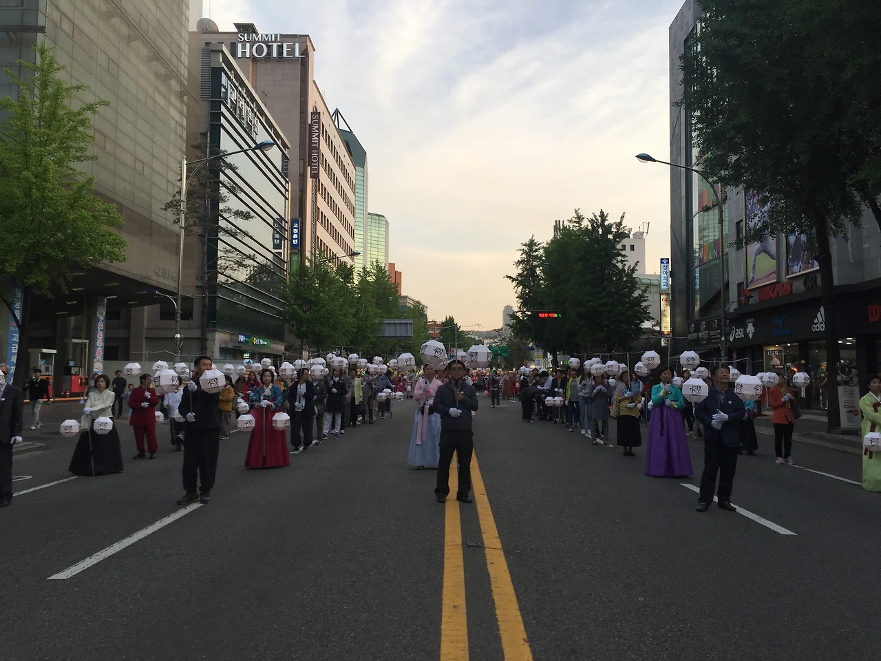 아내와 결혼 후, 옛날 사진을 함께 구경하다가 2016년 연등회 때 찍은 사진을 보게 되었습니다. 행렬이 잠시 멈췄을 때, 당시 기수였던 제가 뒤돌아 찍었던 사진이에요. 아내가 사진을 보더니, 뭔가 생각난 게 있는지 이런 얘기를 했습니다.