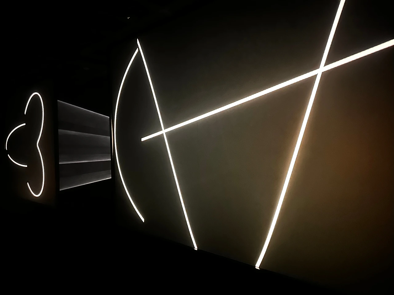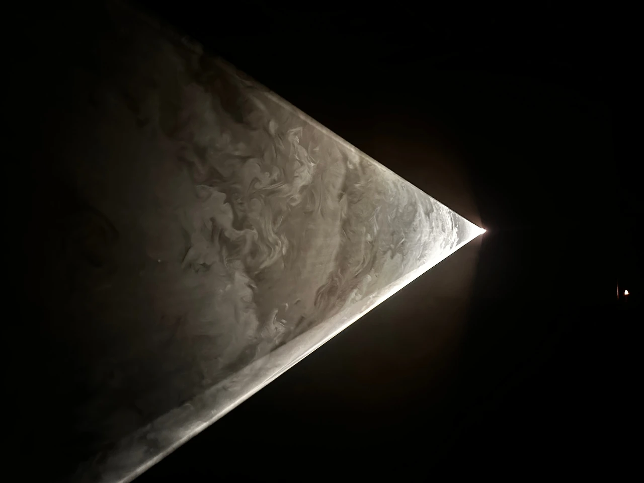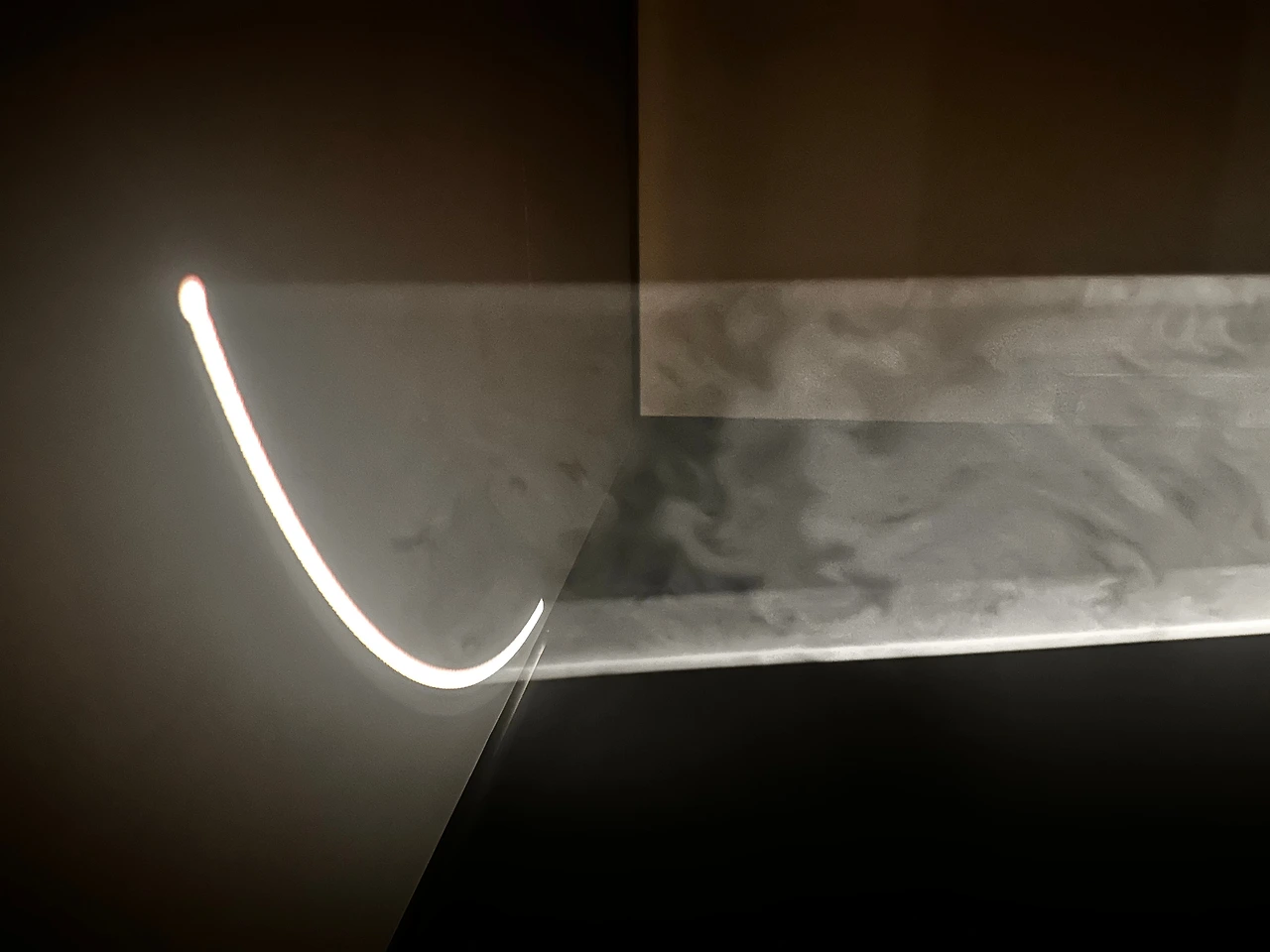 빛은 하나의 초점으로부터 시작해 넓은 스펙트럼과 같이 번지고 퍼져나갔다. 그 사이를 채우는 하얀 연기는 빛 안에 머물지만, 빛이 없는 공간 안에도 머물렀다