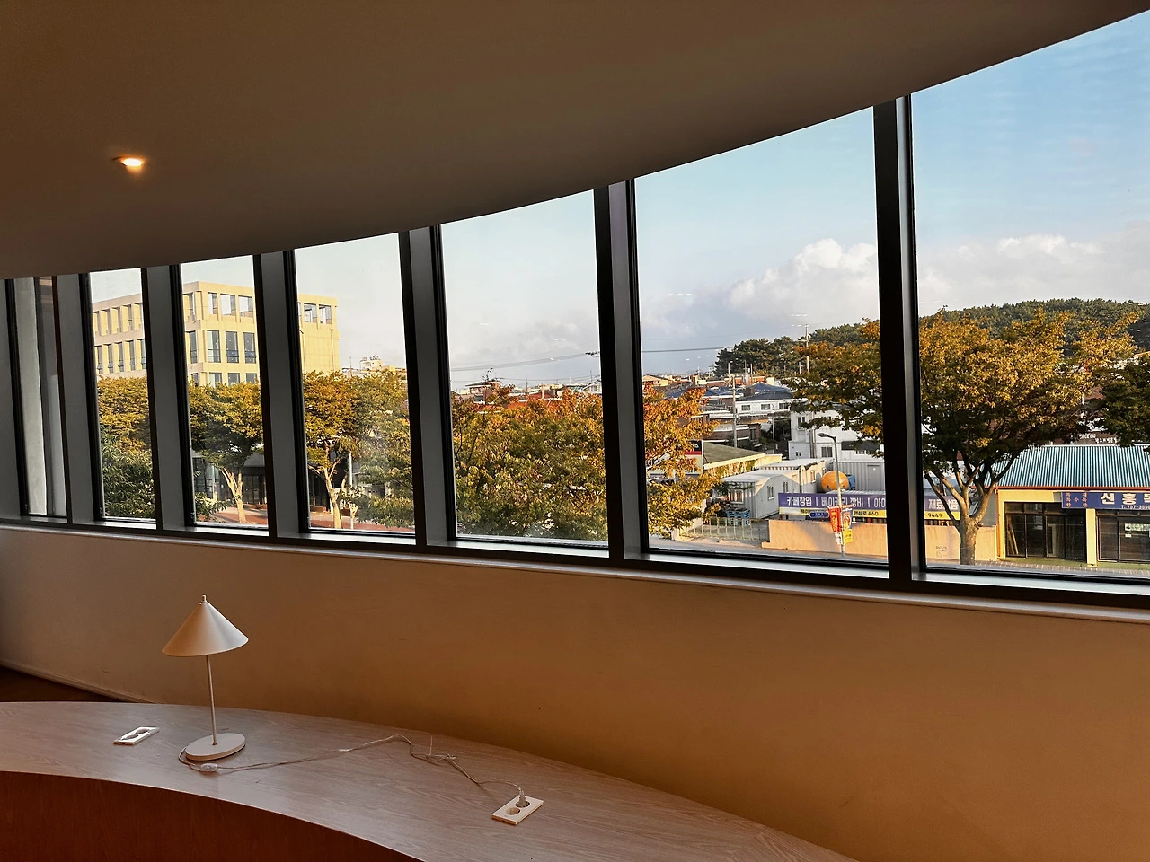 도서관 창 너머로 보이는 나뭇잎이 어느덧 가을 색을 띠고 있었다