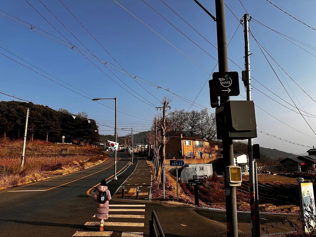 버스 안에는 빈자리가 여럿 있을 정도로 수요일 오전의 10시는 찾는 이가 적어 한가로웠다. 버스에서 내릴 때는 몇 몇 있던 승객이 이전 정류장에서 모두 내리고 탑승객은 그레이스와 나만 남았다. 앉은 자리에서 호기롭게 버스 하차벨을 눌렀지만, 혹시나 하는 마음에서 내리기 전, 운전기사분께 "여기가 애기봉생태공원인가요?"라고 여쭤보았다. 기사분께서는 다음 정류장에서 내리면 된다고 안내해 주시고 이후 내릴 때는 애기봉으로 가는 방향을 알려주셨다. 참 친절하고 감사한 분이셨다.
